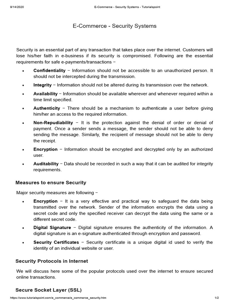 E-Commerce - Security Systems - Tutorialspoint | PDF