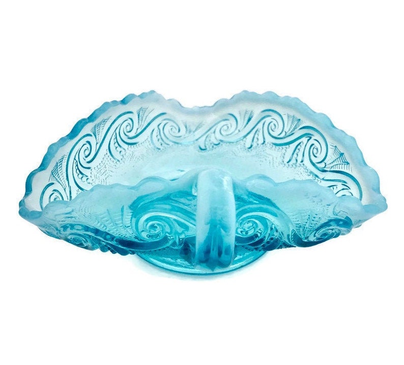 Antique Tri-corner Bowl 1900s | Blue Opalescent Nappy | Jefferson Glass ...