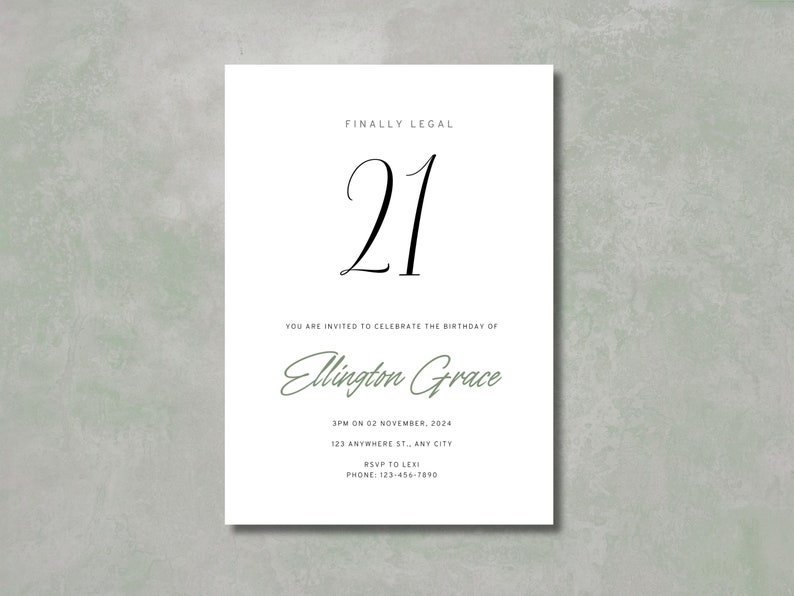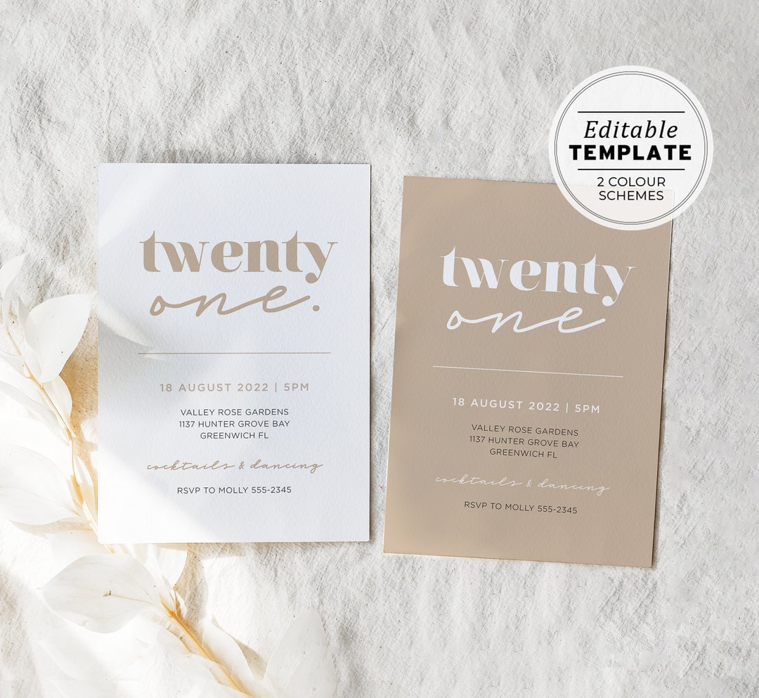 21st Birthday Invitation Editable Template Twenty One Invite, Elegant ...