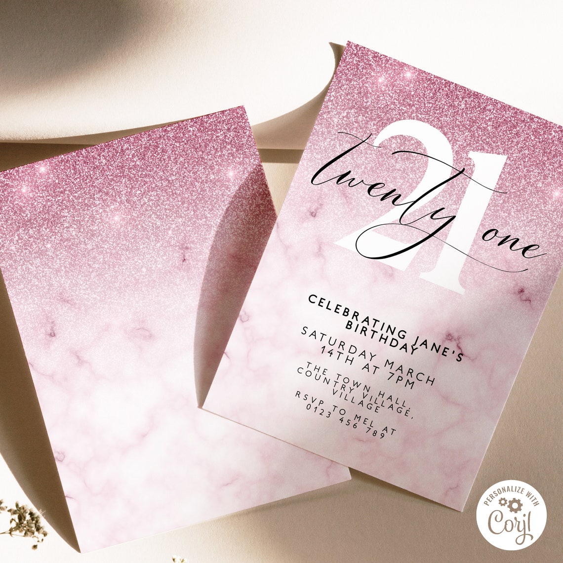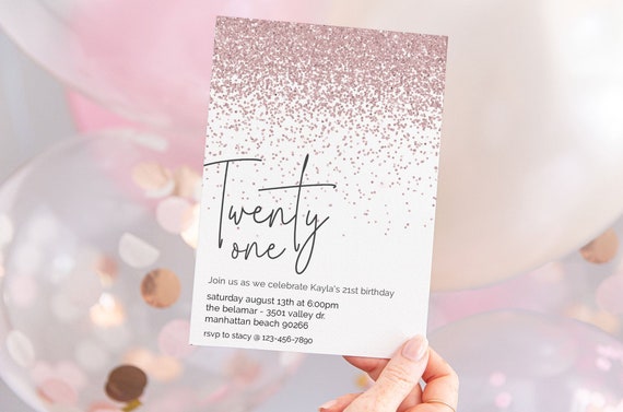 21st Birthday Invitation for Girl Twenty One Invite Girls - Etsy