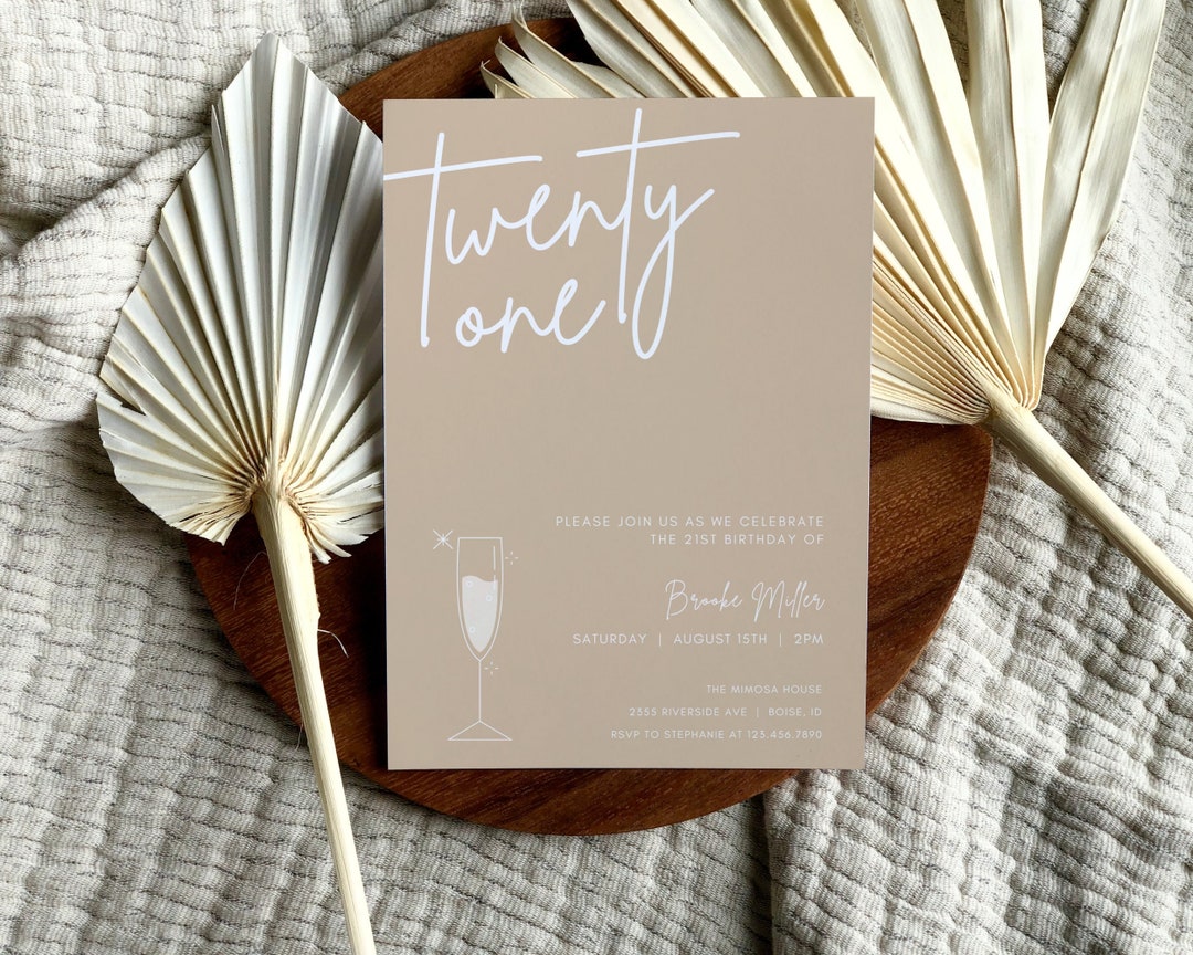 21st Birthday Invitation, Whimsical Twenty One Birthday Invite, Beige ...