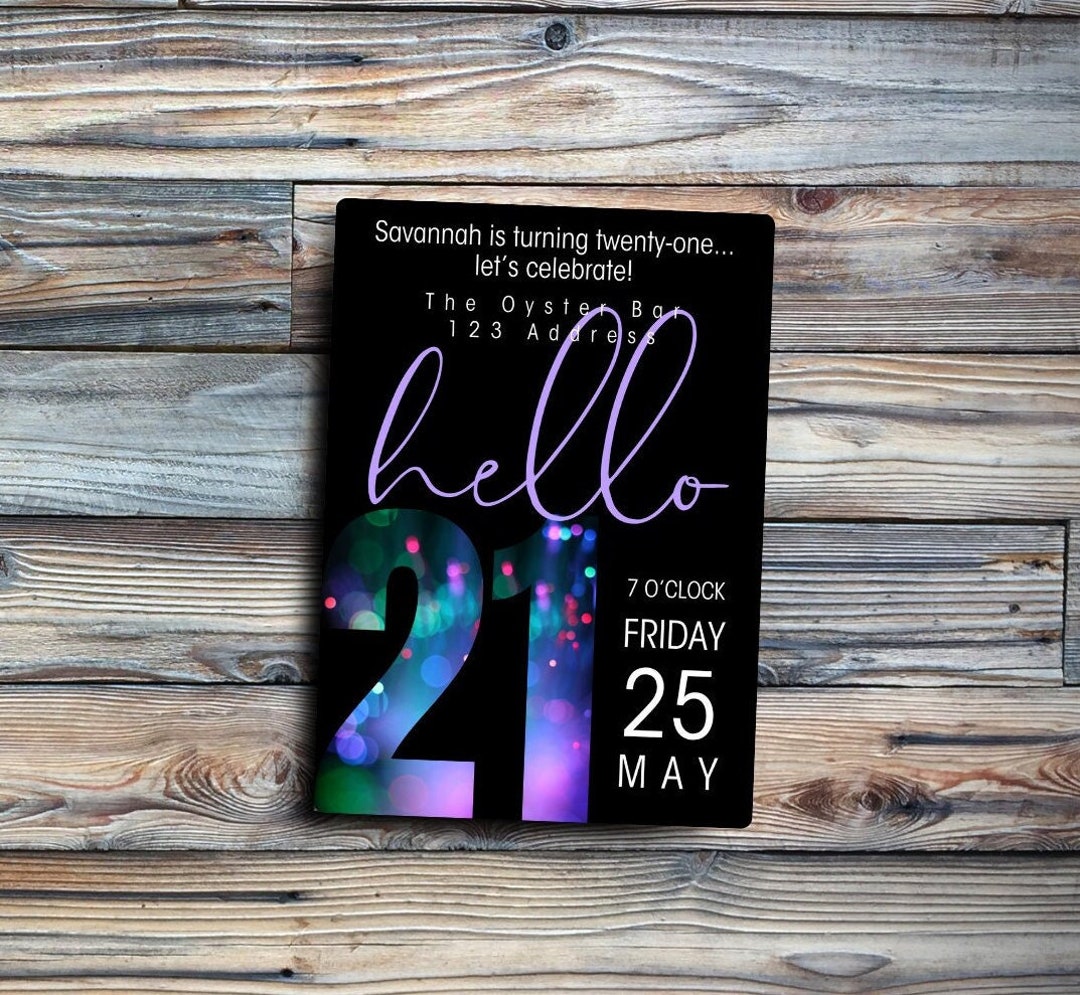Twenty One Birthday Party Invitation Custom Digital Download Evite Text ...