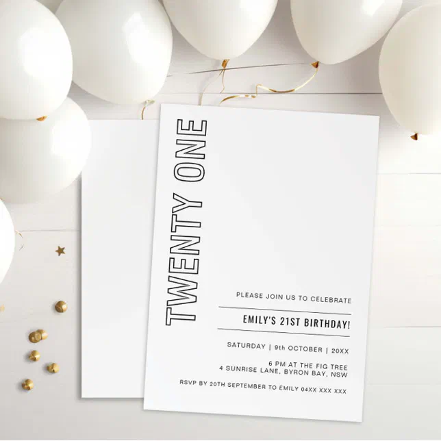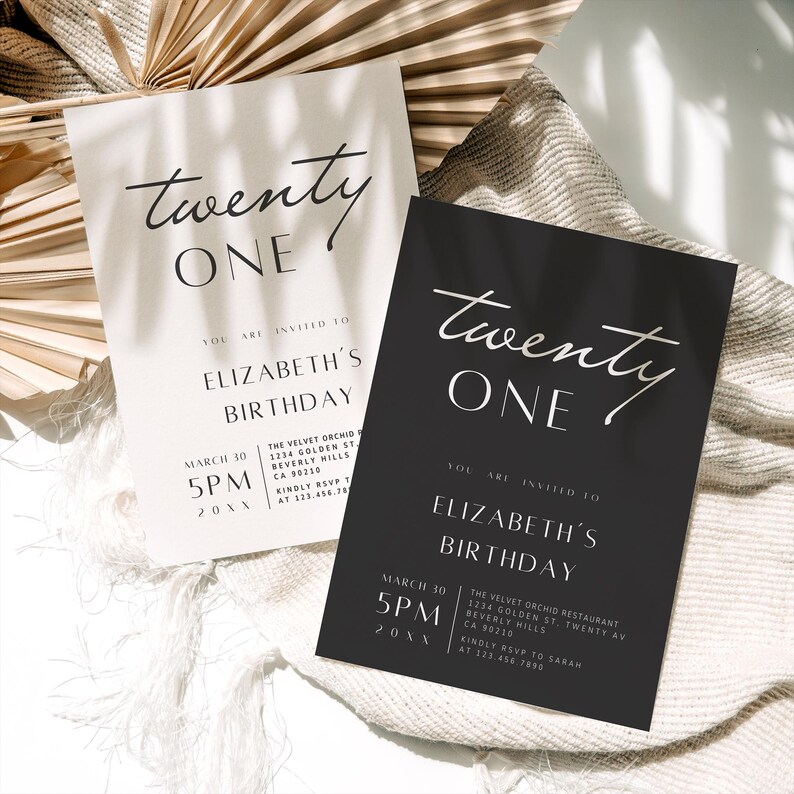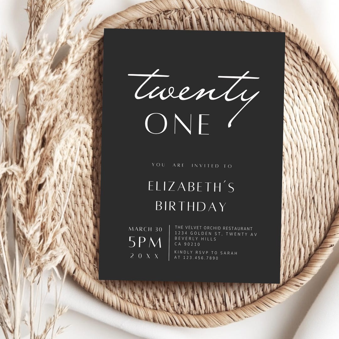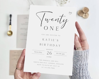 Modern 21st Birthday Invitation Minimalist Twenty One - Etsy UK