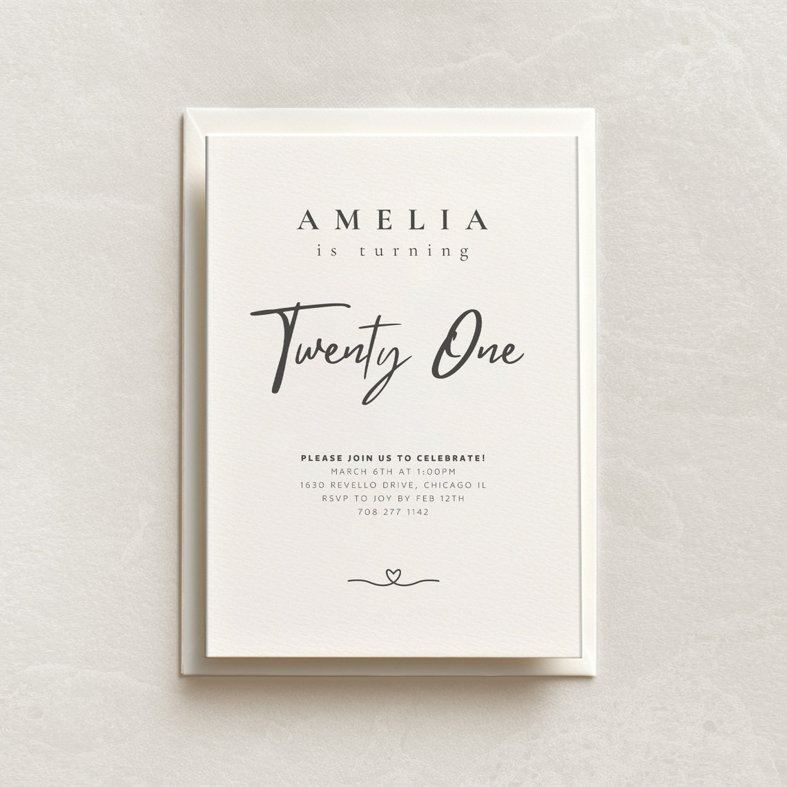 Modern 21st Birthday Invitation, Minimalist Twenty One Birthday Invite ...