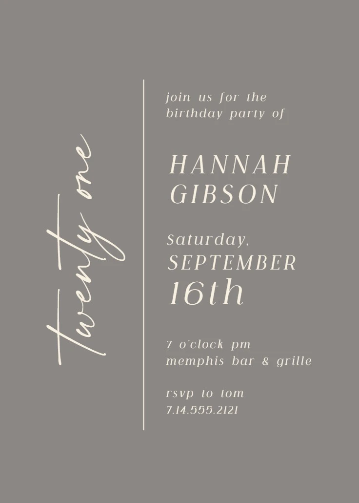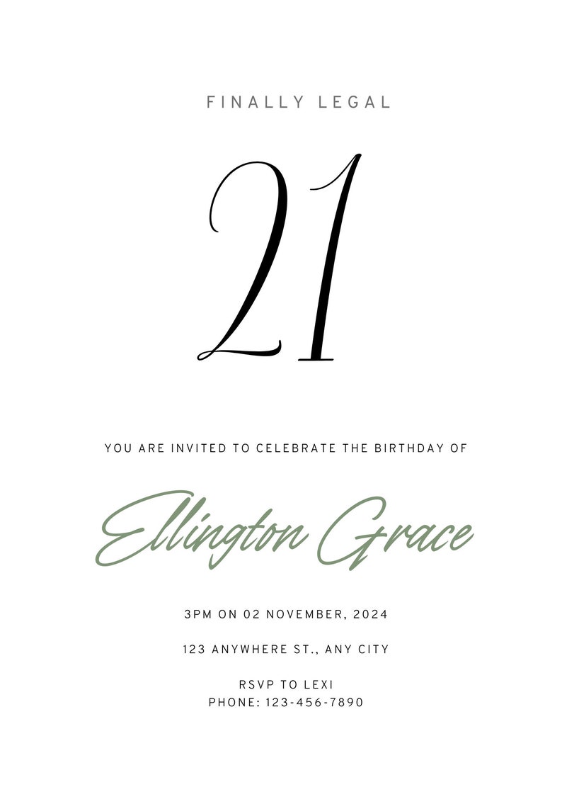 Classy 21 - Birthday Invitation Template (Free) | Greetings Island