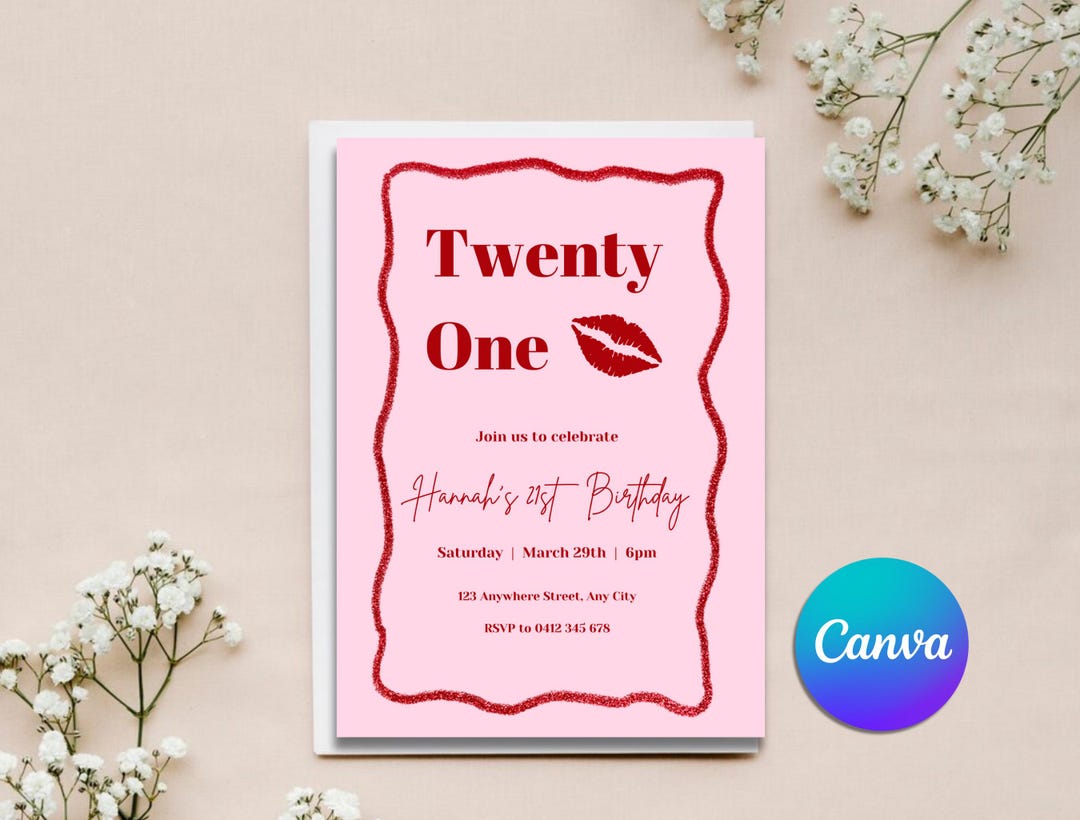 Twenty One Birthday Invitation, Instant Download, Canva Template, DIY ...