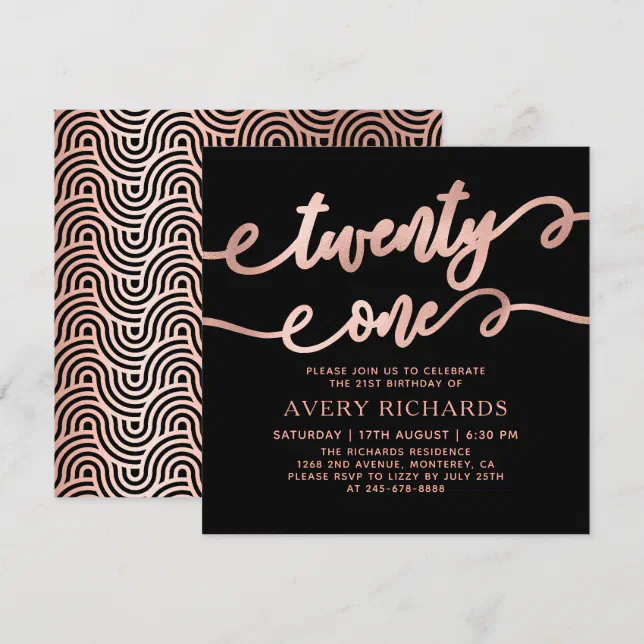 Twenty one | Rose Gold 21st Birthday Party Invitation | Zazzle