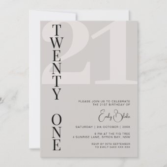Minimalist Beige Twenty One 21st Birthday Party Invitation | Zazzle in ...