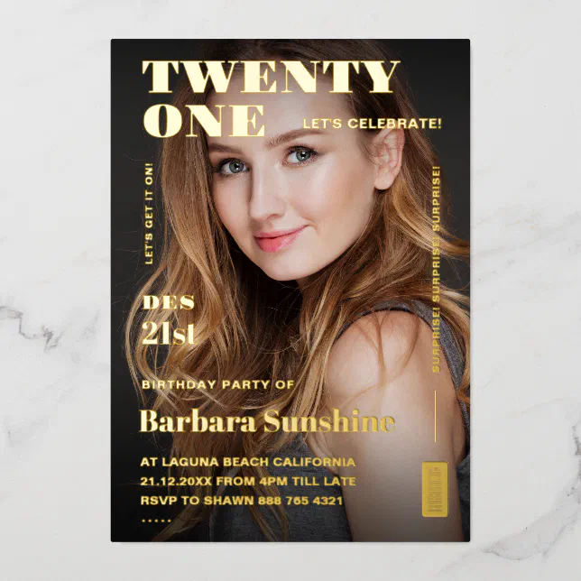 Modern Twenty One 21st Birthday Magazine Gold Foil Invitation | Zazzle
