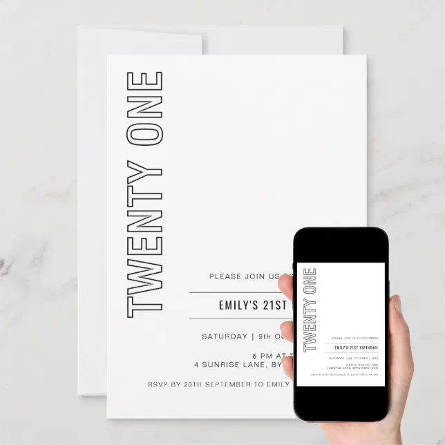 Twenty one | Modern 21st Birthday Party Invitation | Zazzle