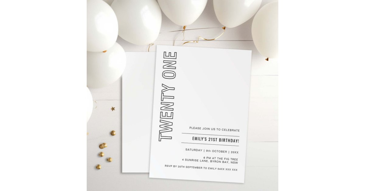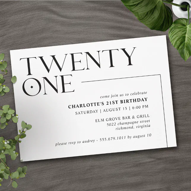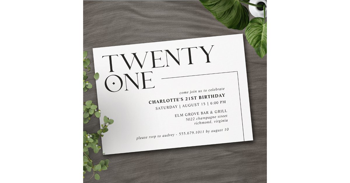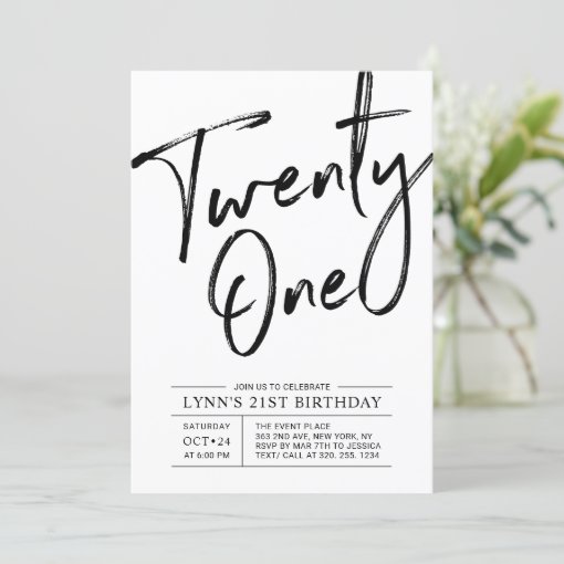 Modern Twenty One 21st Birthday Party Invitation | Zazzle