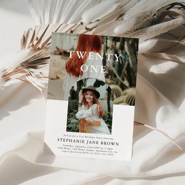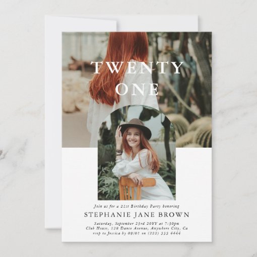 Stylish Minimal Photo TWENTY ONE 21st Birthday Invitation | Zazzle