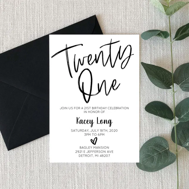 Twenty One Party Invitation, Minimalist 21st Birthday Party Invitation ...