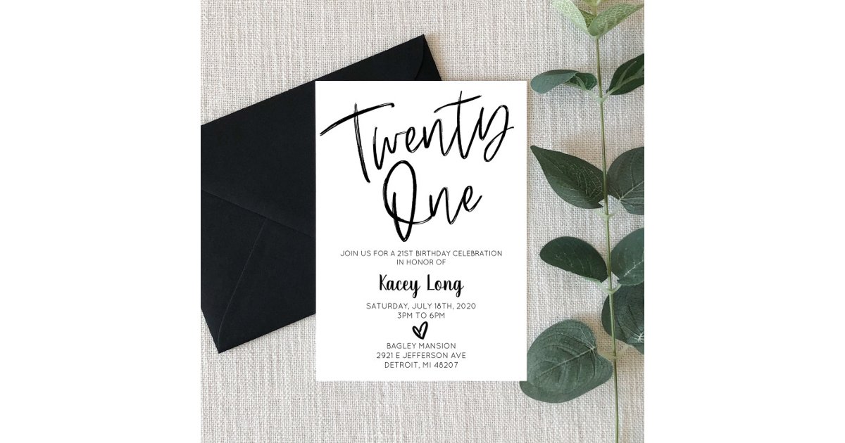 Twenty One Minimalist 21st Birthday Party Invitation Printable Card ...