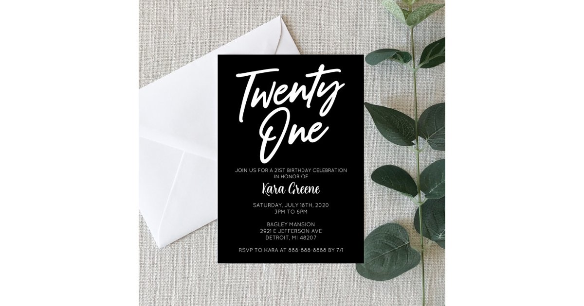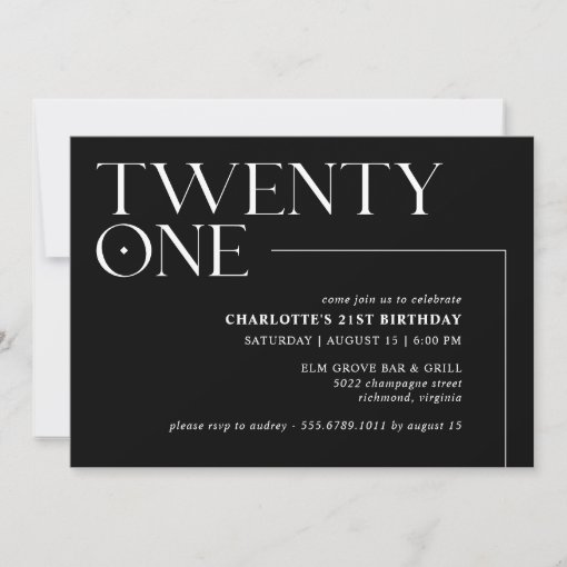 Modern Black Twenty One 21st Birthday Invitation | Zazzle