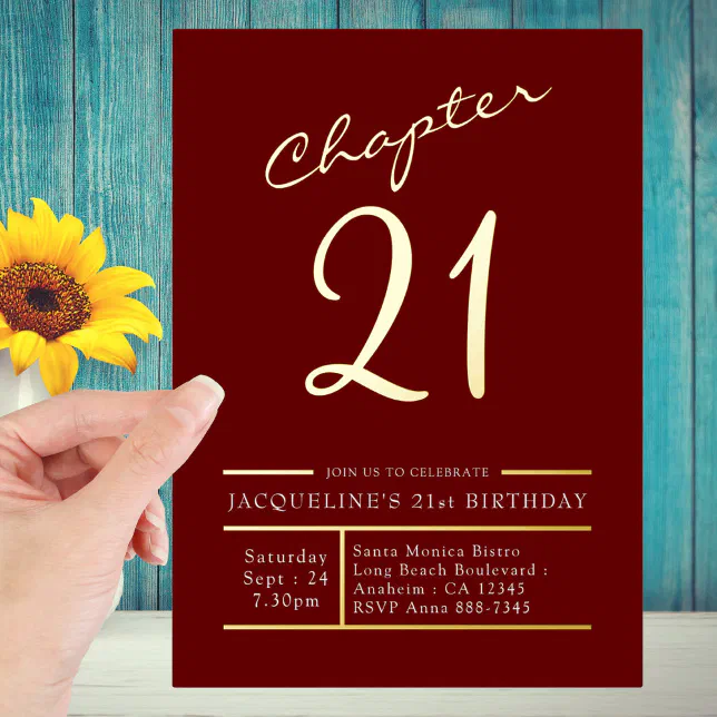 Twenty One Red Gold 21st Birthday Party Gold Foil Invitation | Zazzle