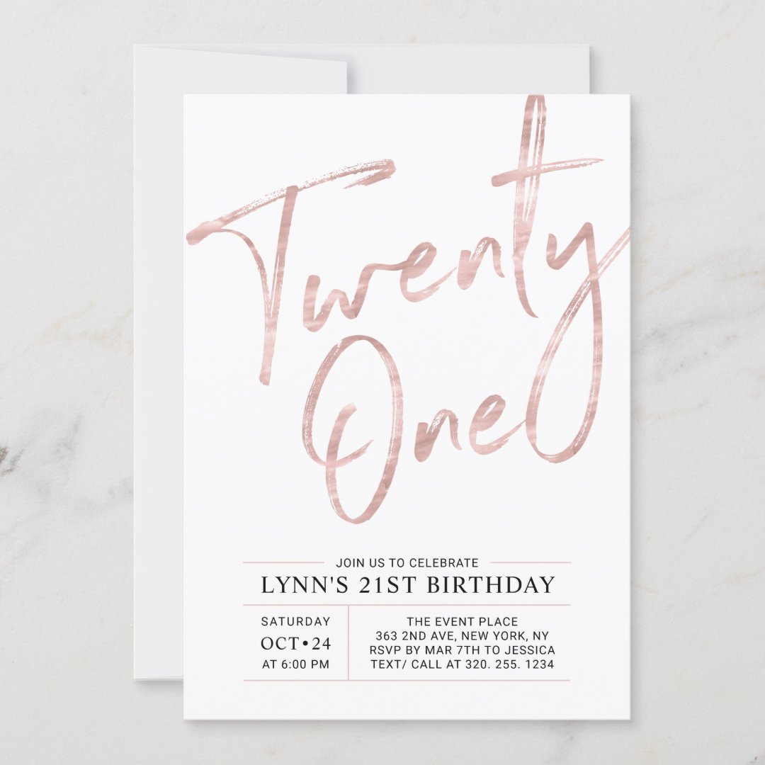 Elegant Twenty One Rose Gold Script 21st Birthday Invitation | Zazzle
