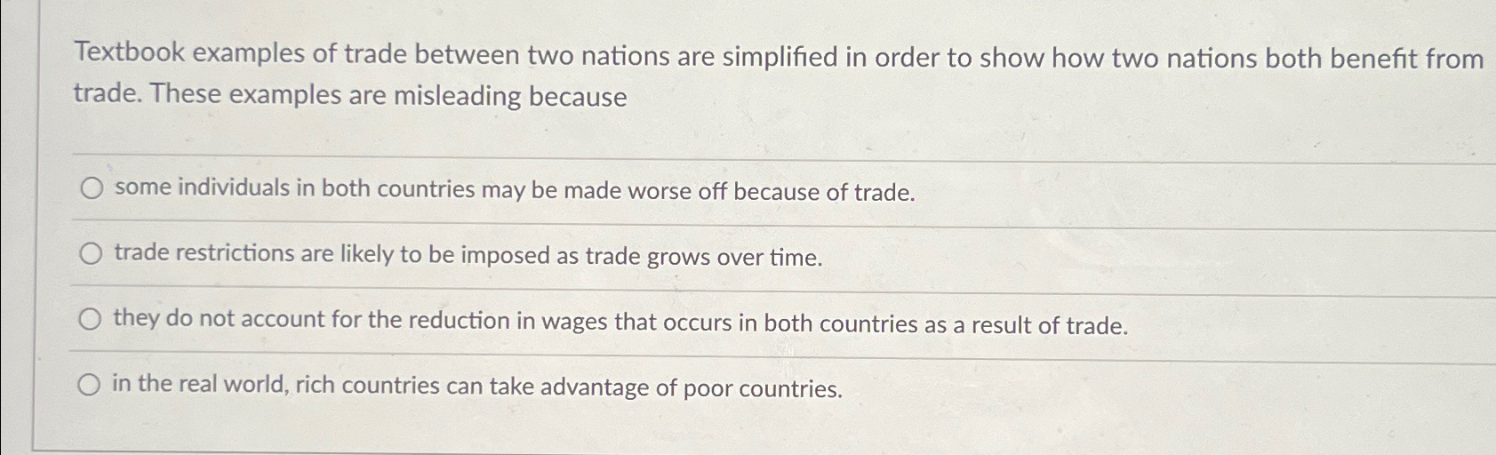 Solved Textbook examples of trade between two nations are | Chegg.com