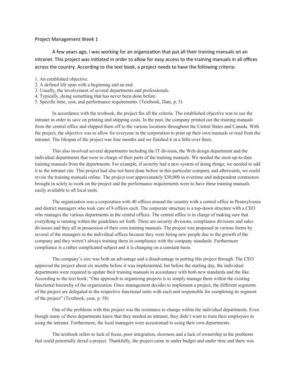 An Example Of Textbook Project Management