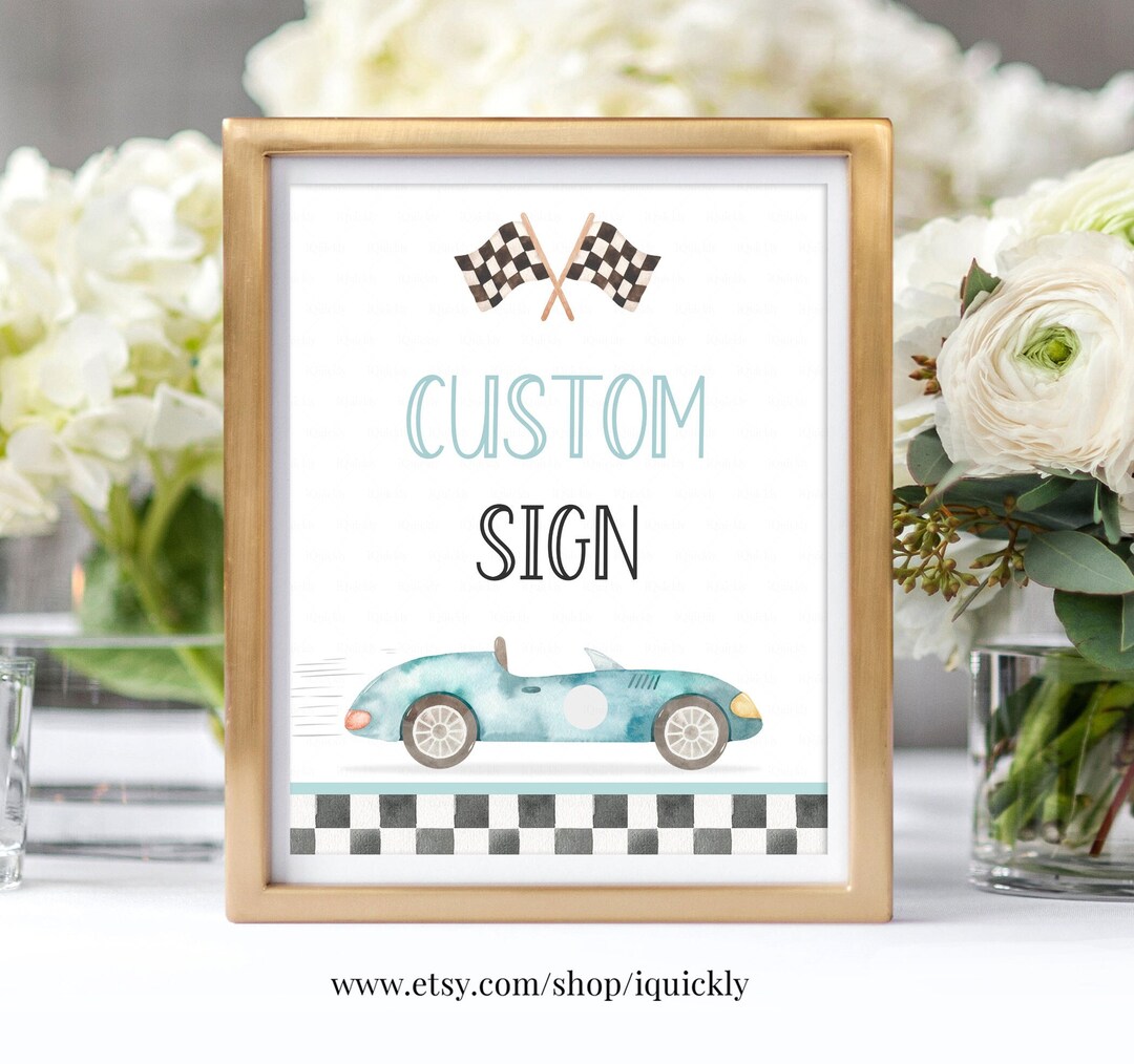 Editable Race Car Party Sign, Racecar Table Sign, TWO FAST Race Car ...