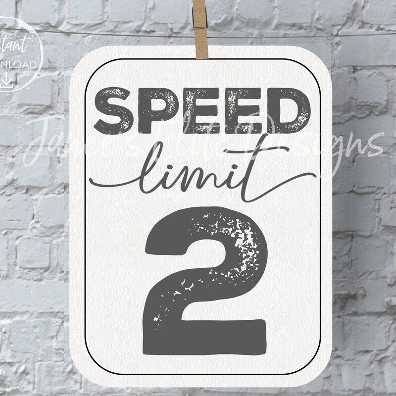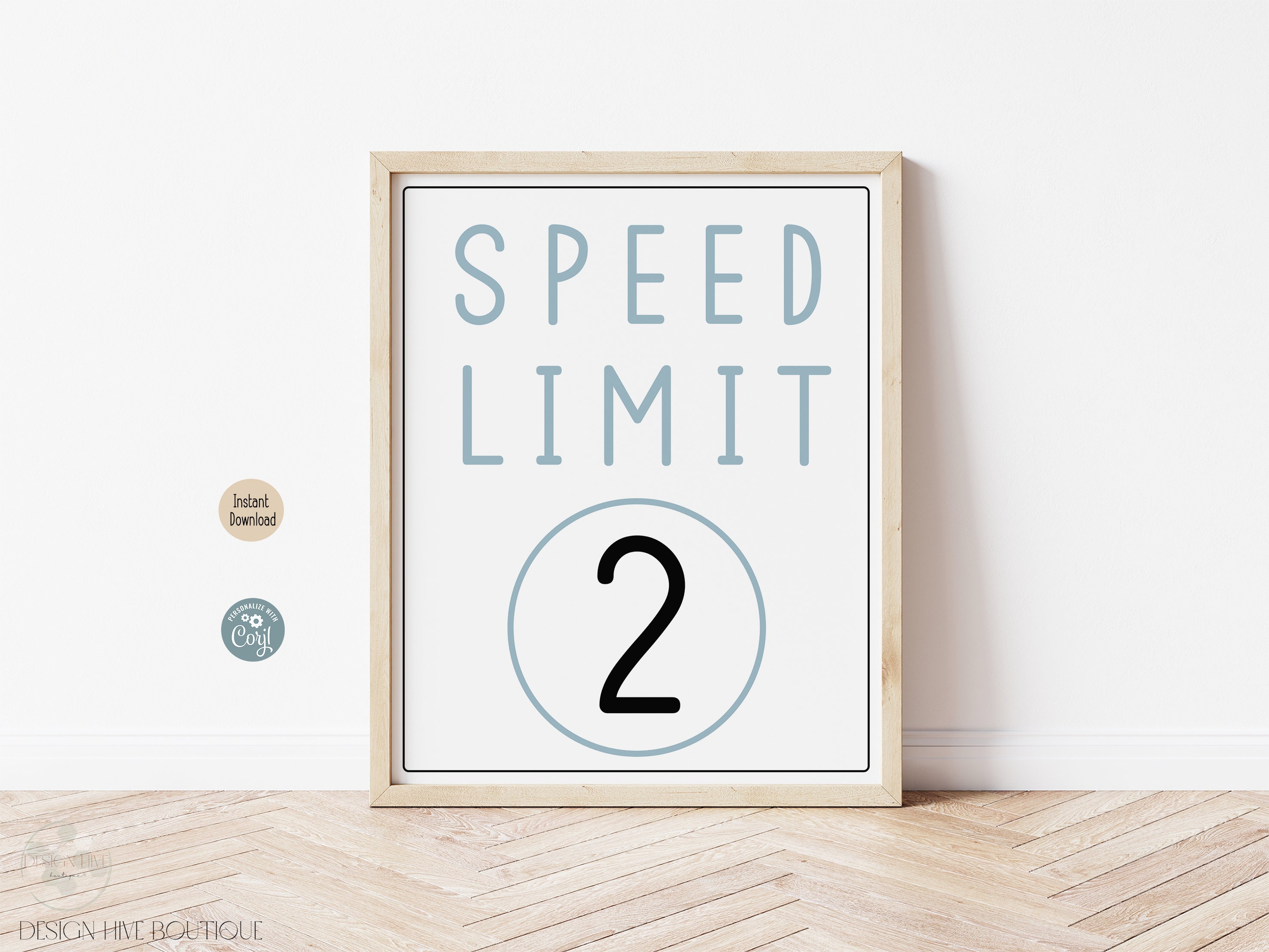 Speed Limit 2 Sign Printable, Instant Download Two Fast Race Car ...