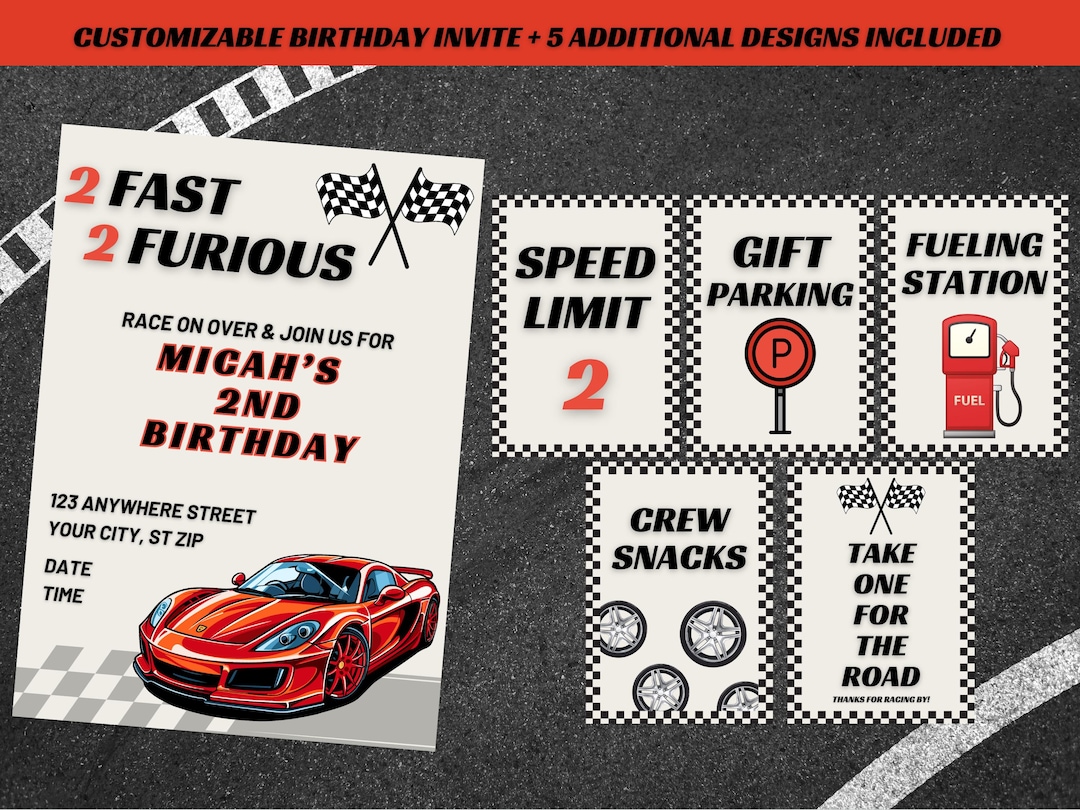 2 FAST 2 FURIOUS Invite & Sign Package | 2nd Birthday Party | Boy ...