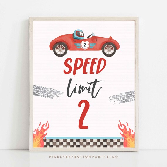 Speed Limit Race Car Sign Race Car Birthday Party Sign Two Fast ...