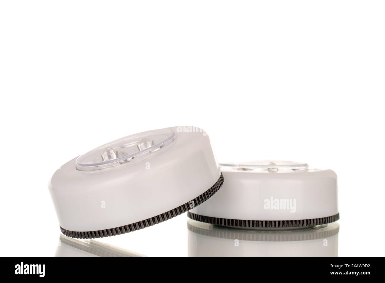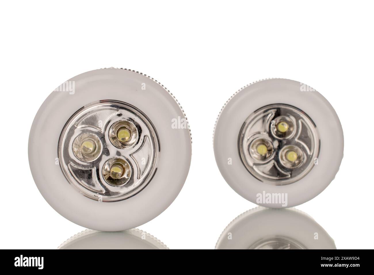 Two flashlights on batteries, macro, isolated on white background Stock ...
