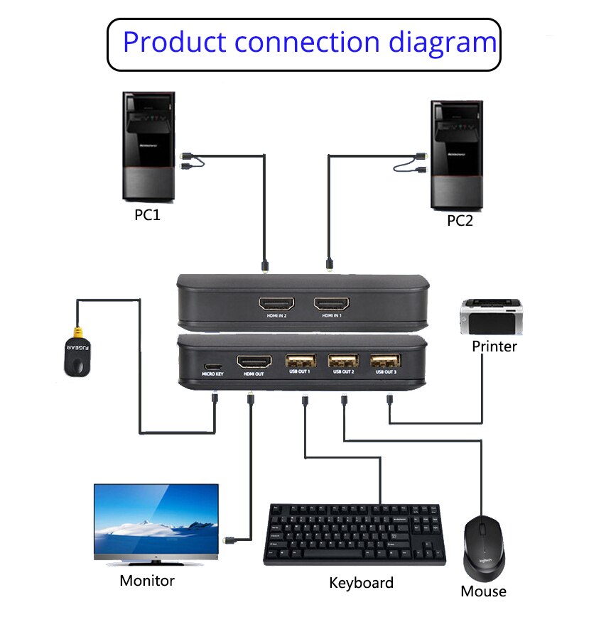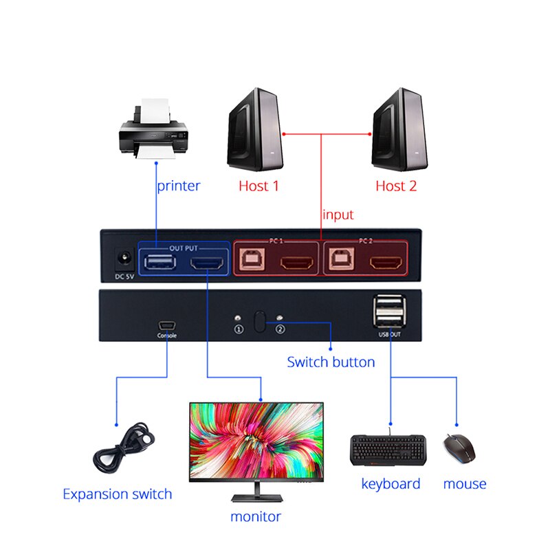 HDMI-Compatible Two USB KVM Box For Shared Monitor... – Grandado