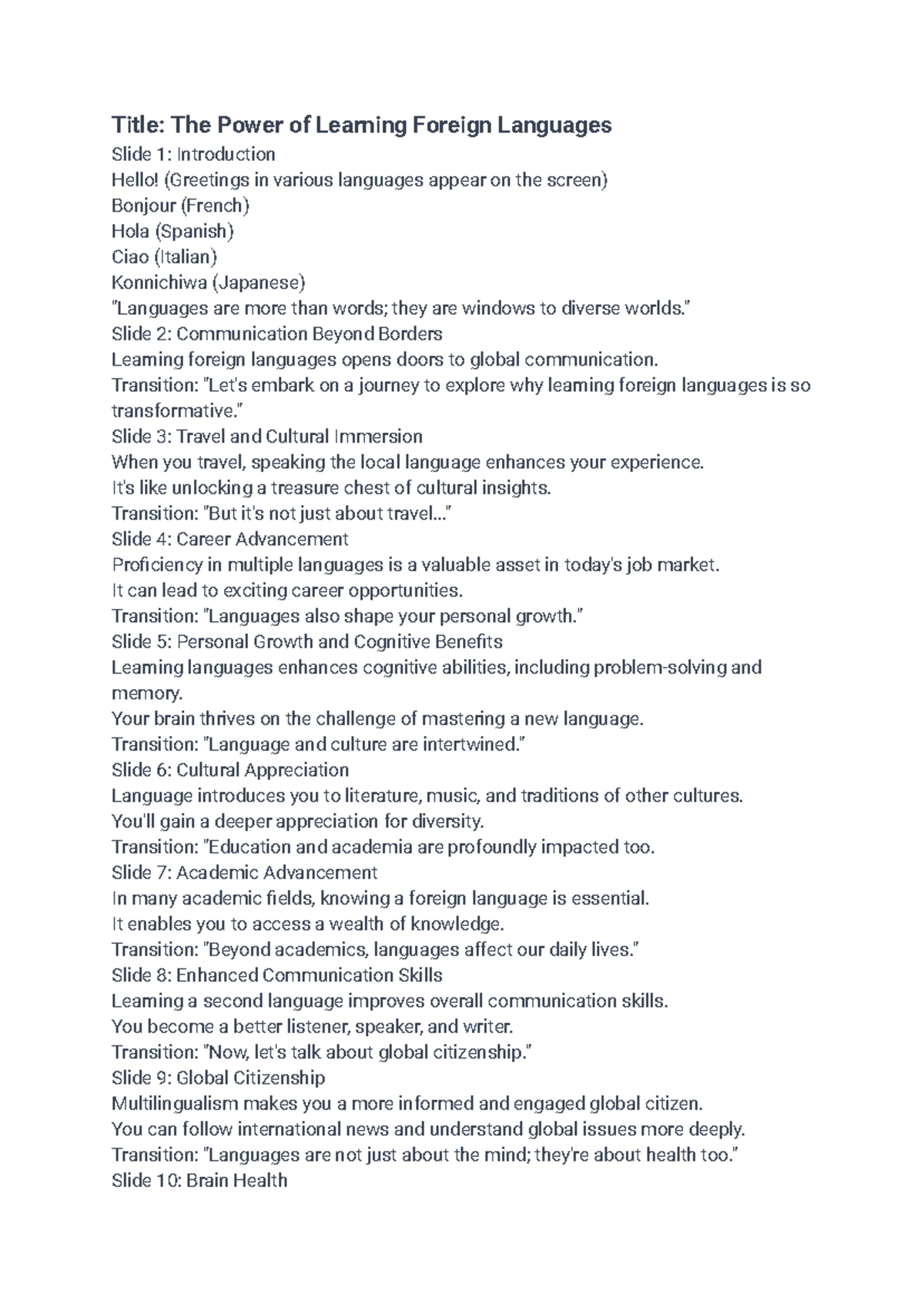 Writing About language - Title: The Power of Learning Foreign Languages ...