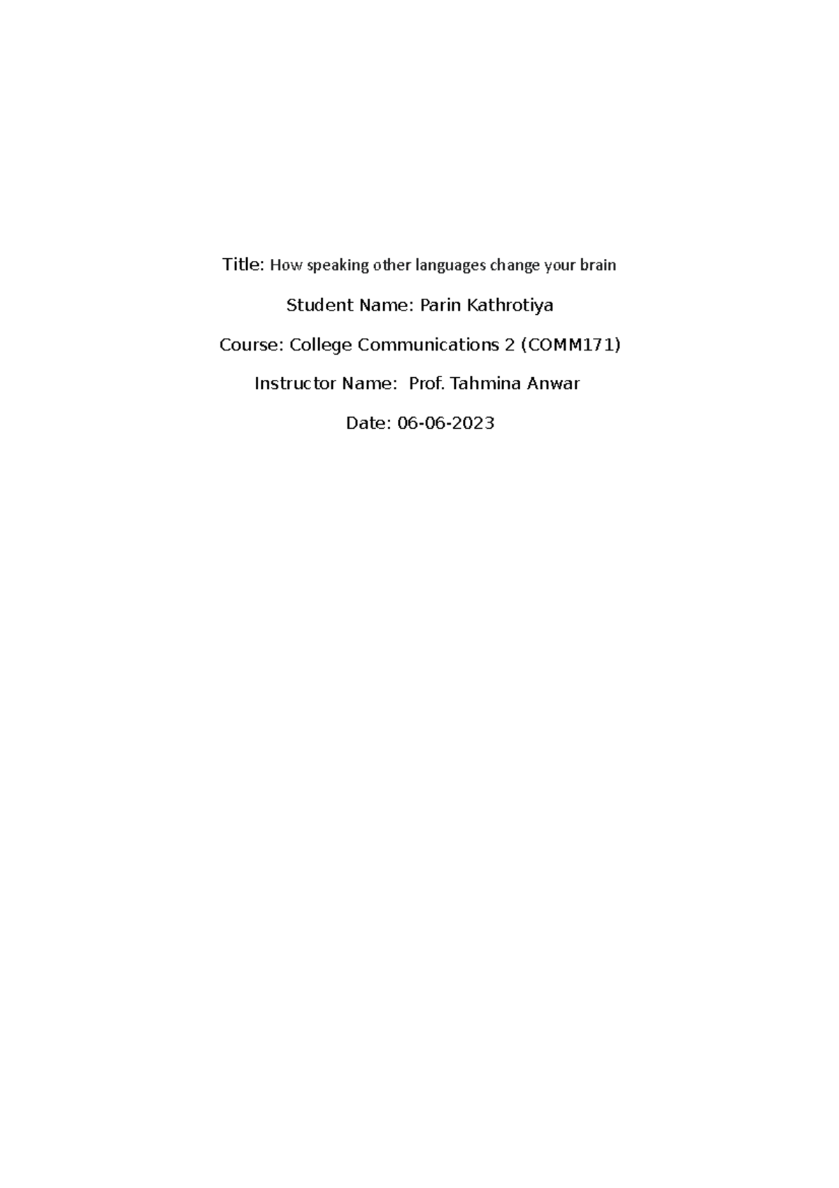 Final Essay - PROJECT 1 ASSIGNMENT - Title: How speaking other ...