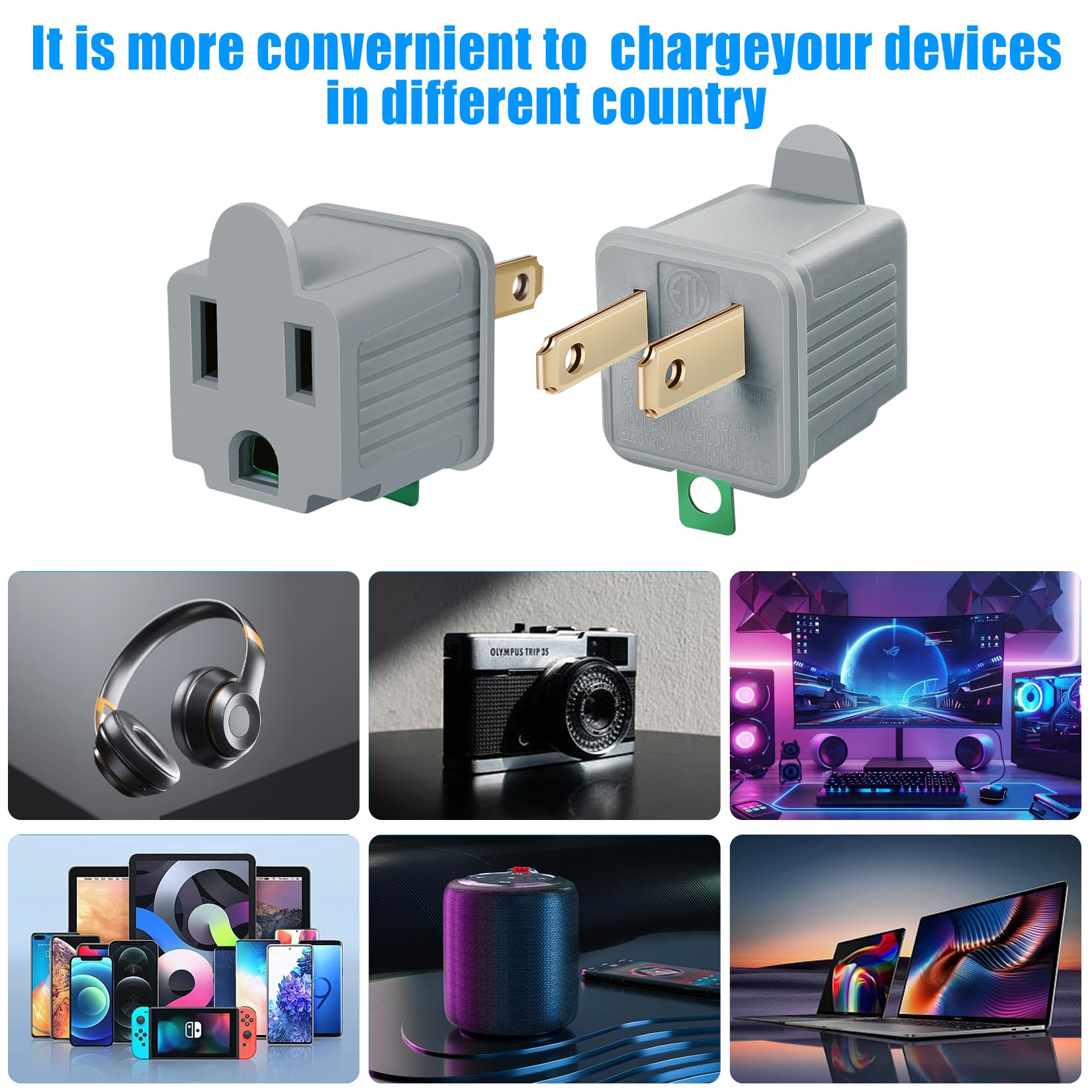 Amazon.com: ELEGRP 2 to 3 Prong Adapter, 3 Pack, Gray - Polarized ...