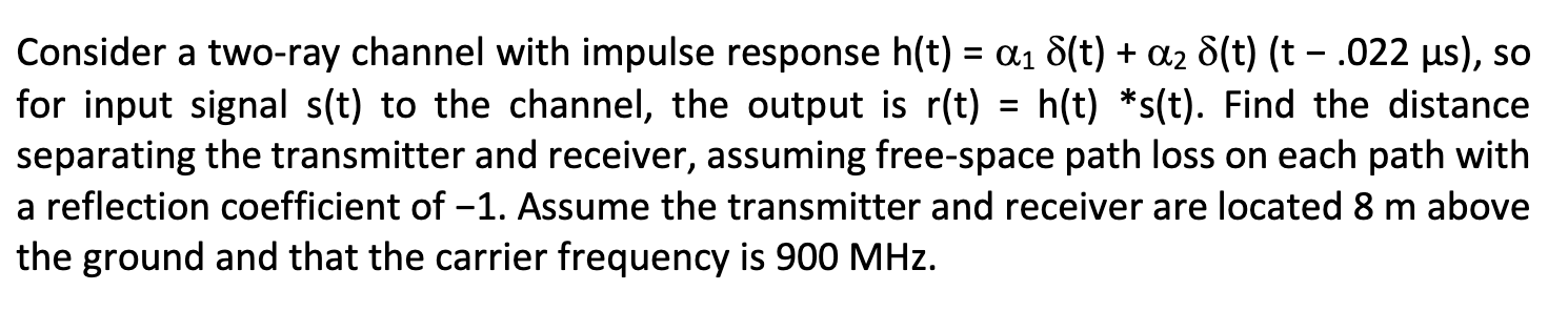 Solved Consider a two-ray channel with impulse response h(t) | Chegg.com