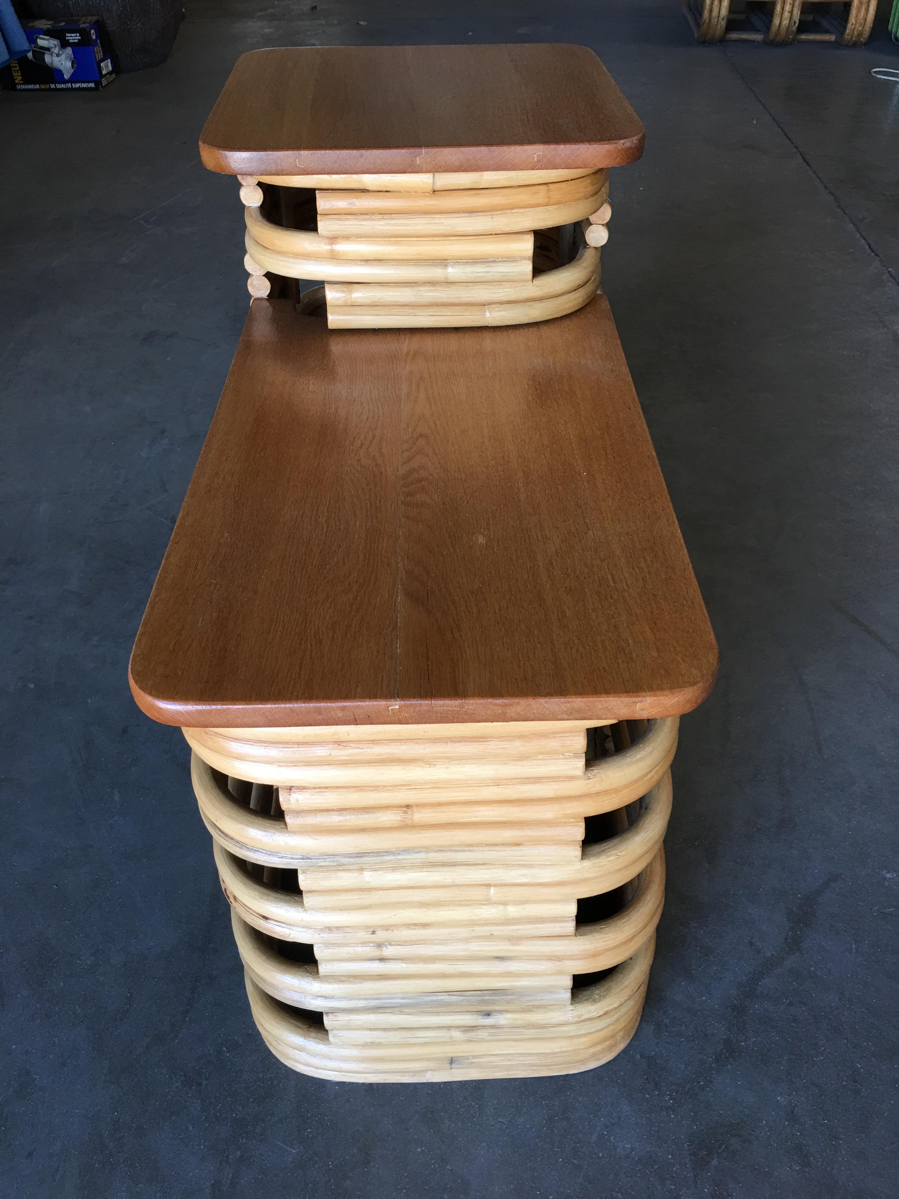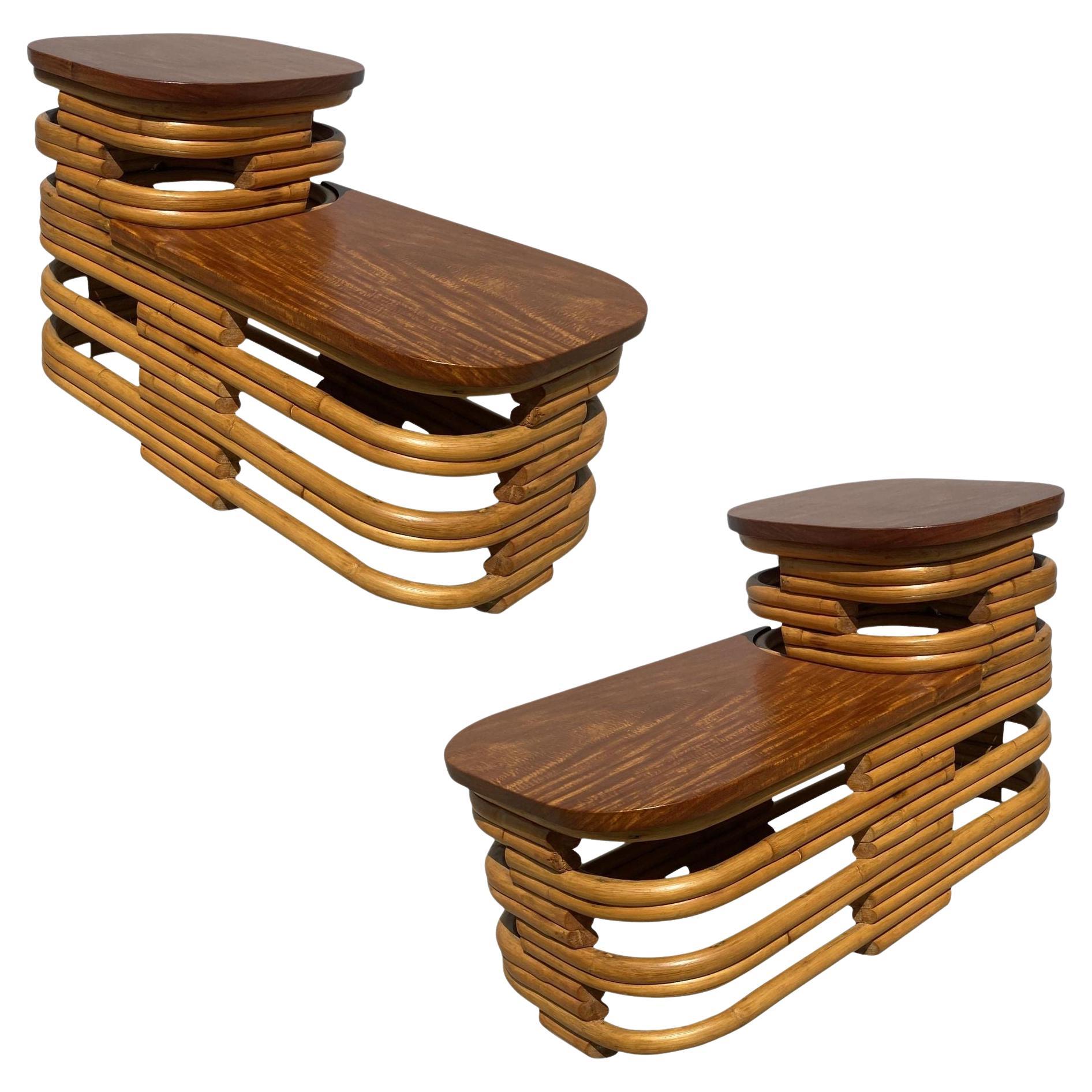 Restored Two-Tier Stacked Rattan Side Table w/ Mahogany Top, Pair For ...