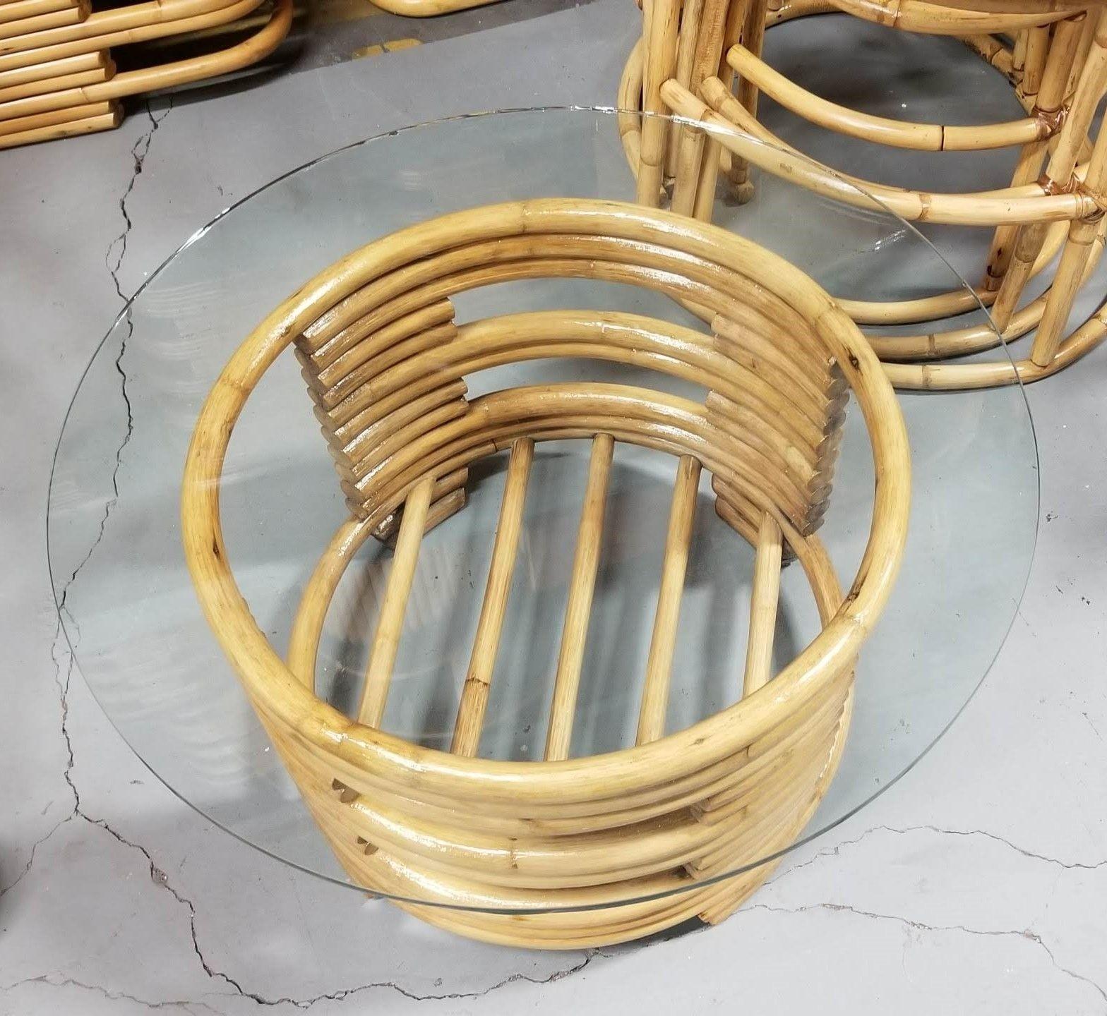 Restored Rattan Round Coffee Table with Glass Top and Stacked Base For ...