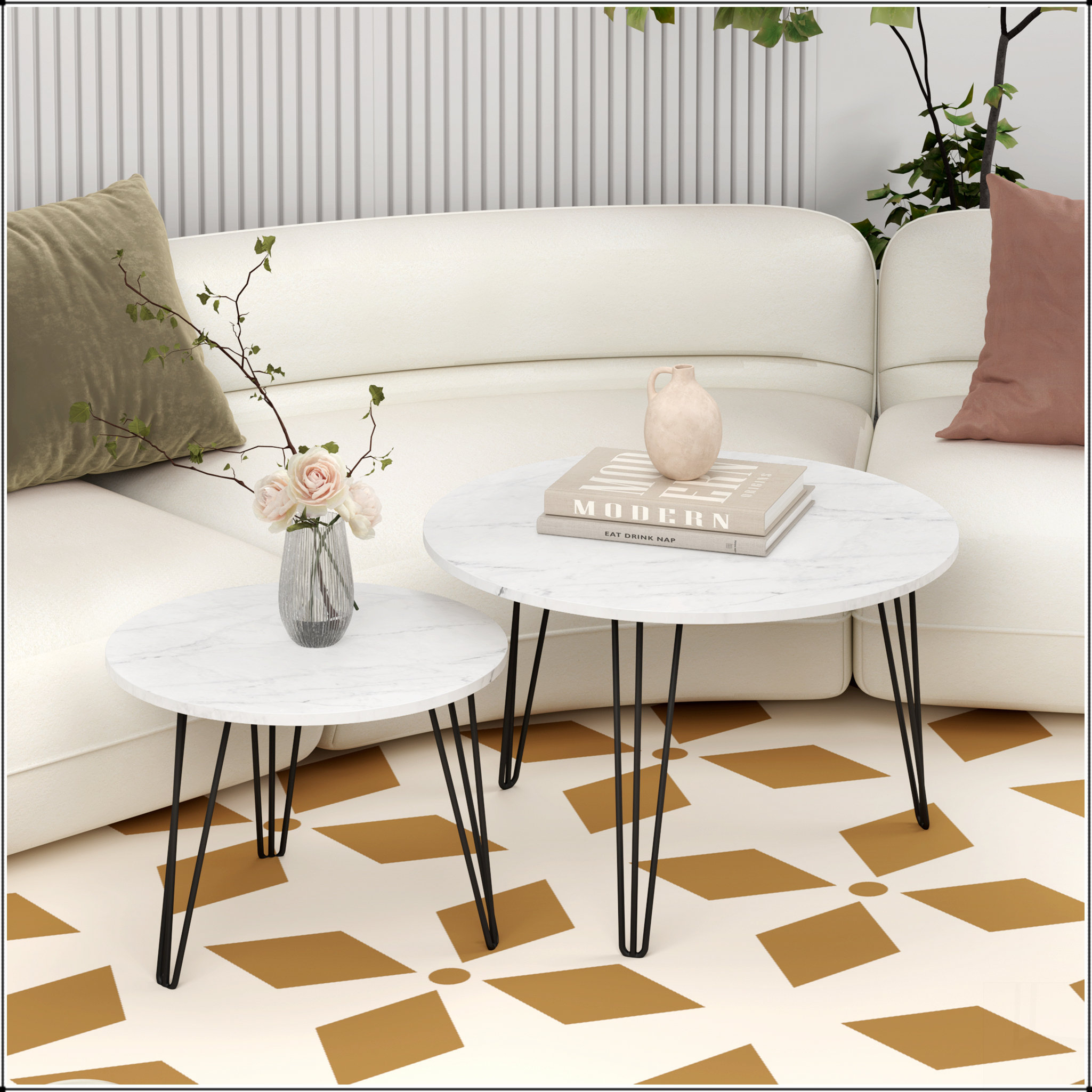 Wrought Studio™ set of 2 coffee round tables with a marble-look top and ...