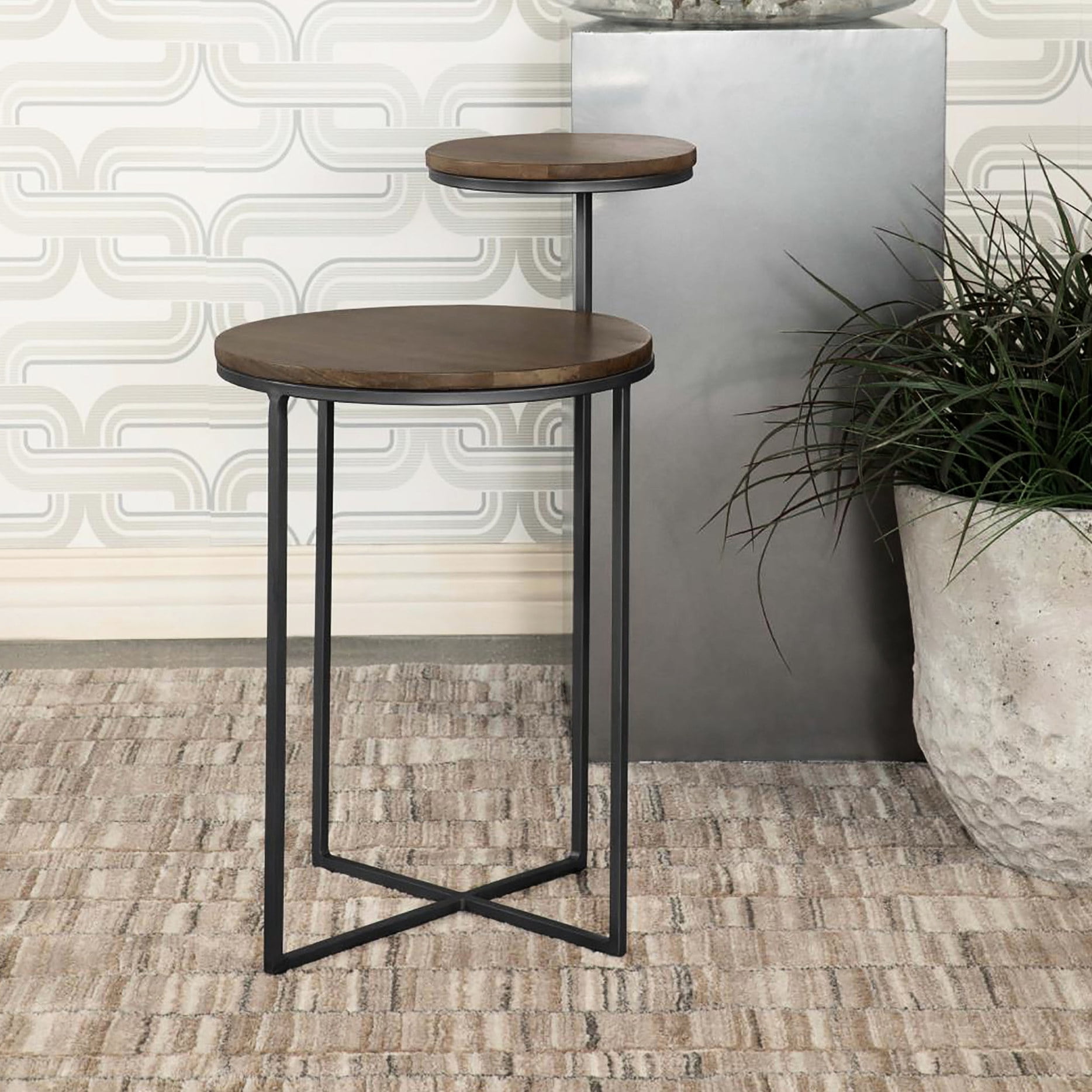 Stacked Round Tables with Metal Bases and Wooden Tops