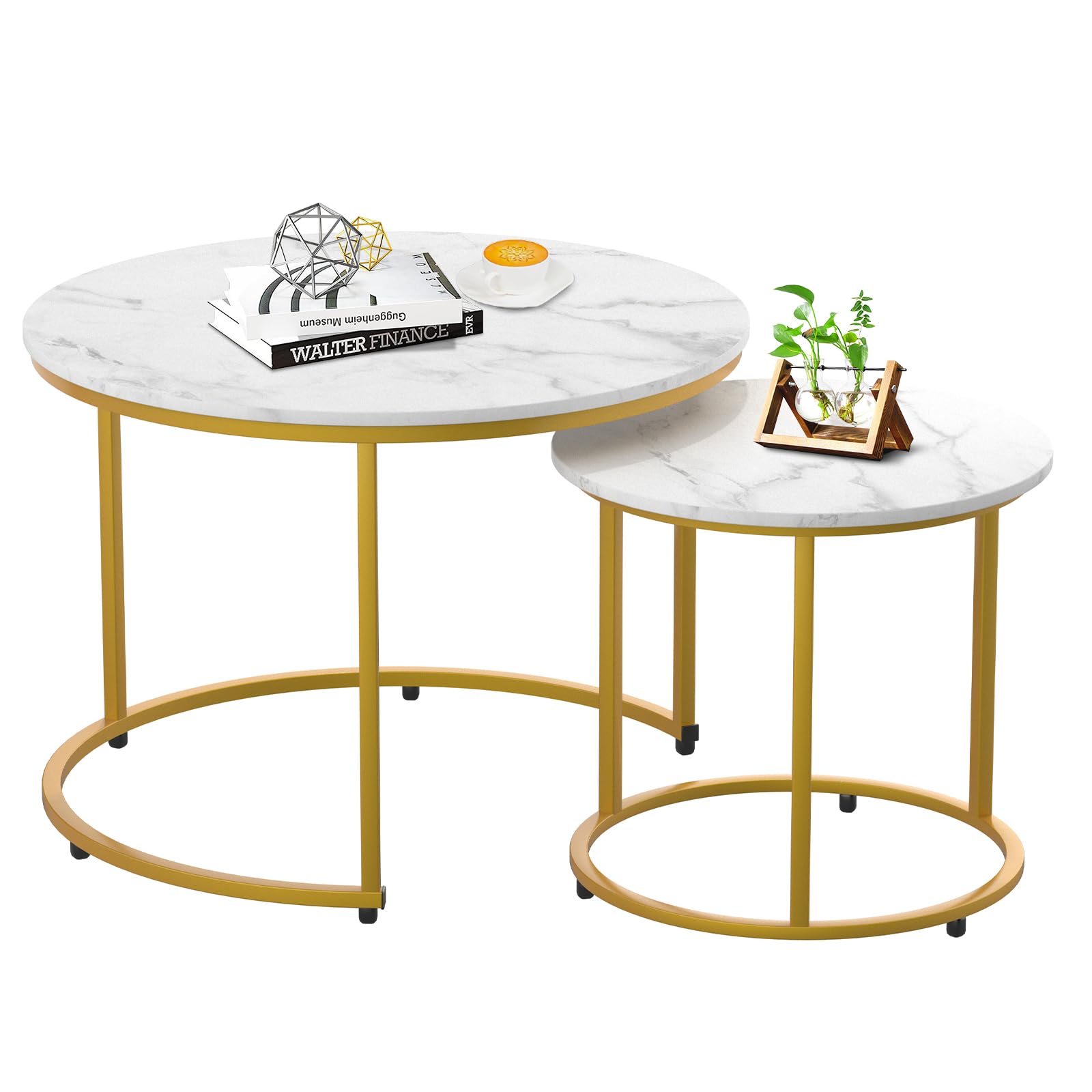 Round Nesting Side Table Set of 2 Stacking Coffee Tables with Faux ...