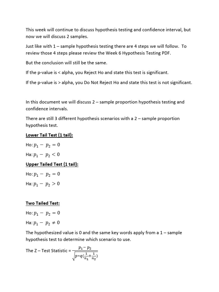 SOLUTION: Module 20 proportions for two samples - Studypool