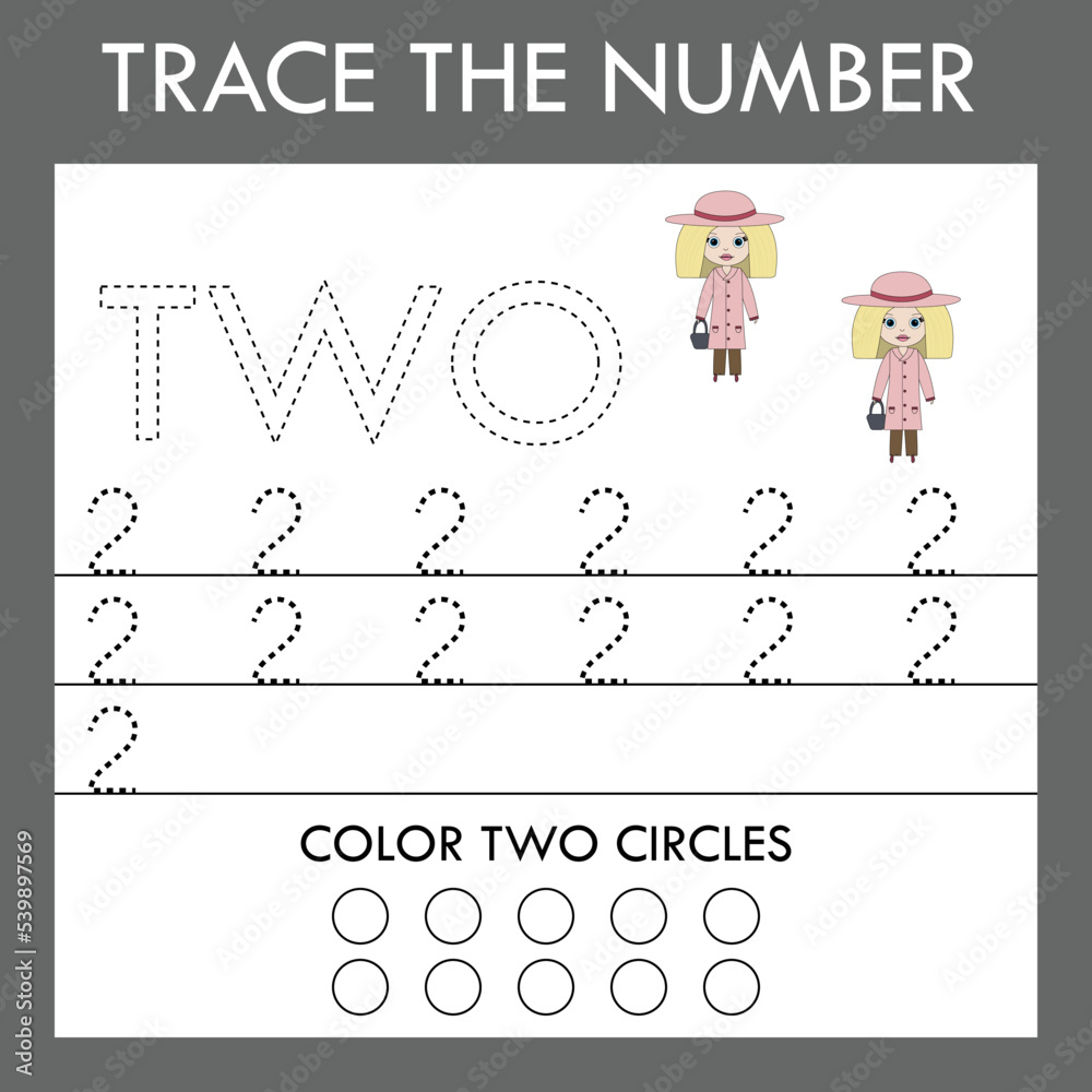 Premium Vector | Learning numbers for kids number two math worksheet