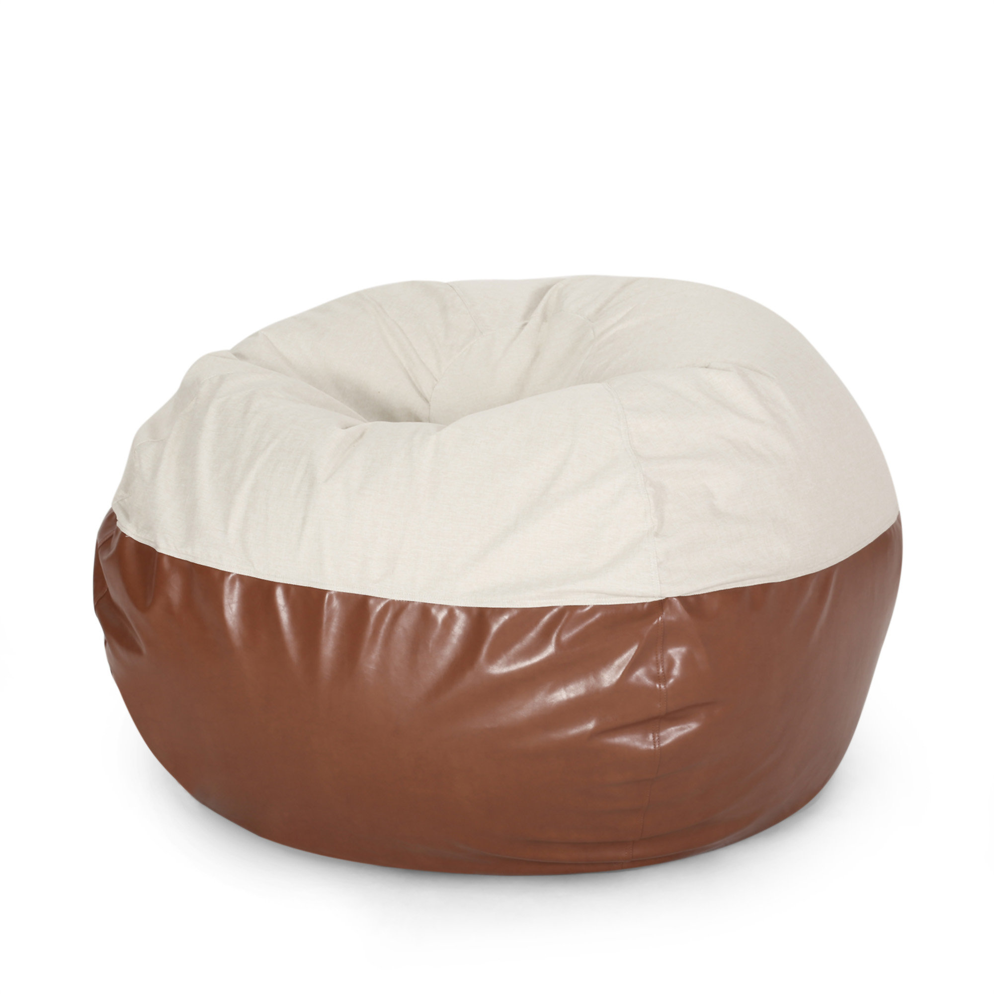 Trule Two color Fabric and Faux Leather Rounded Bean Bag | Wayfair
