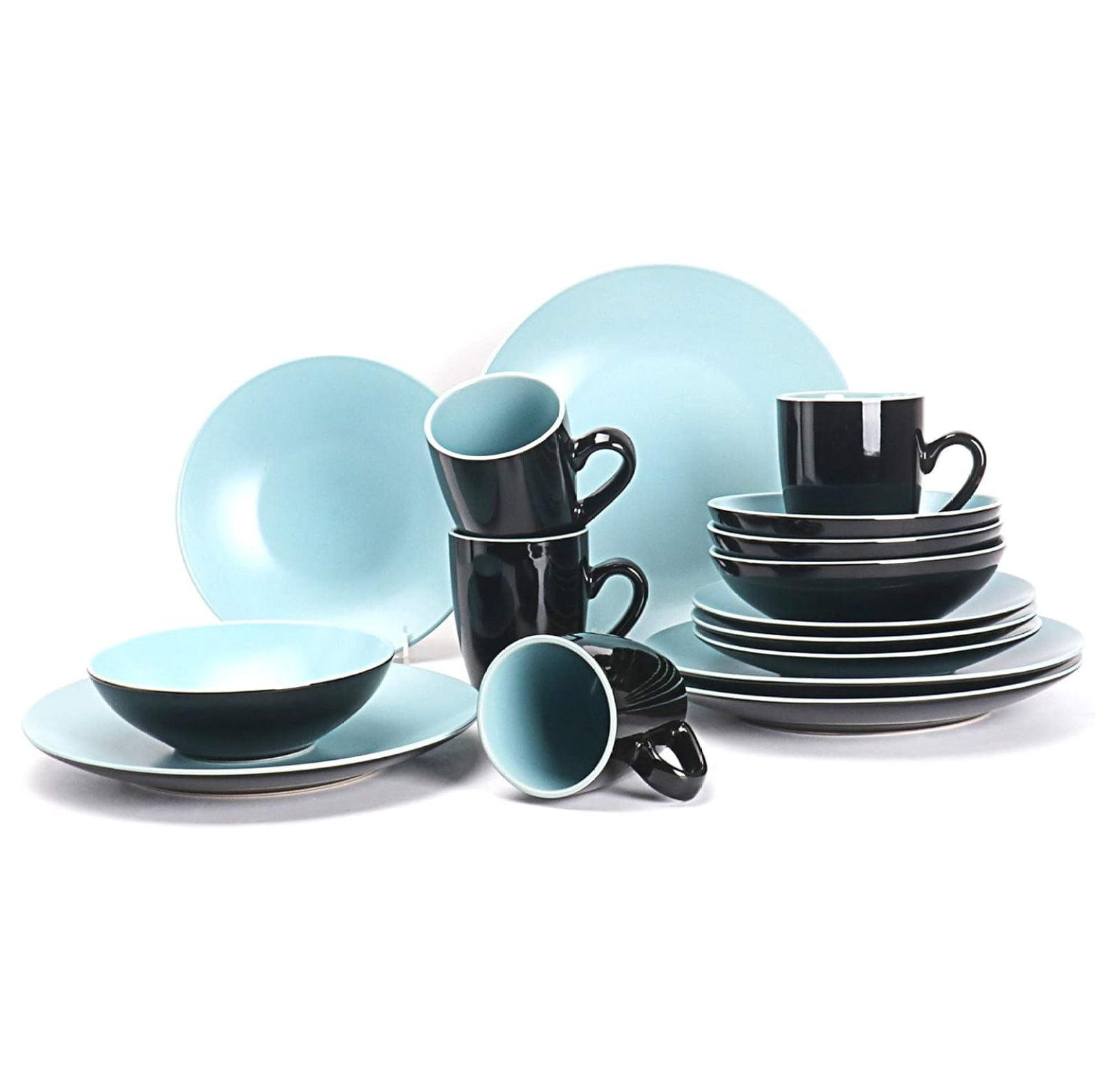 Stoneware Two-Tone Colors Life 16pc Dinner Set, Outside Shiny Black ...
