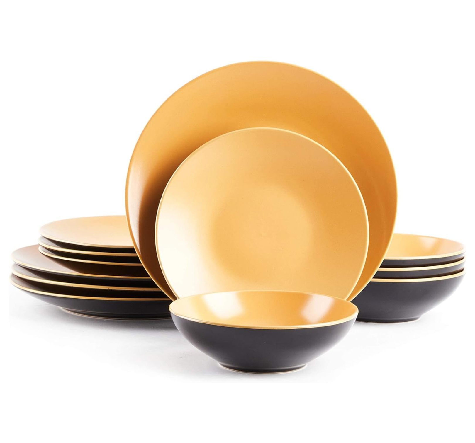Stoneware Two-Tone Colors Life Dinner Set 12pc Set, Outside Shiny Black ...