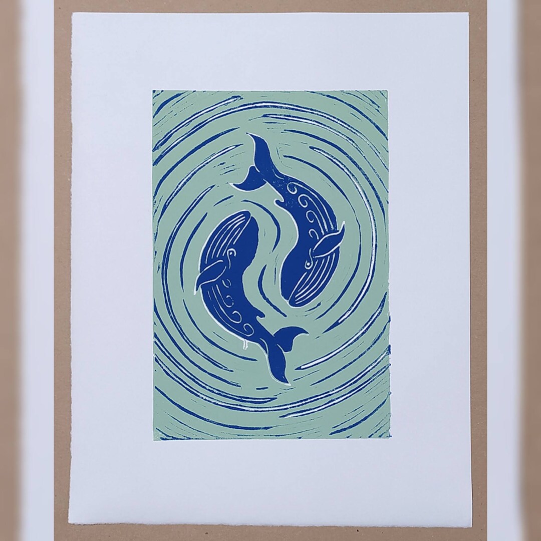 Original Two Color Lino Reduction Print just Two Fish Wall Art Hanging ...