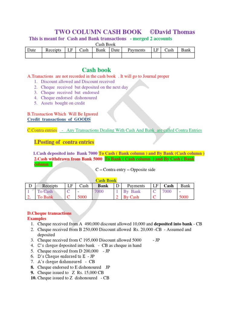 #2 Cash Book ~ Introduction (Double / Two Column Cash Book with Bank ...