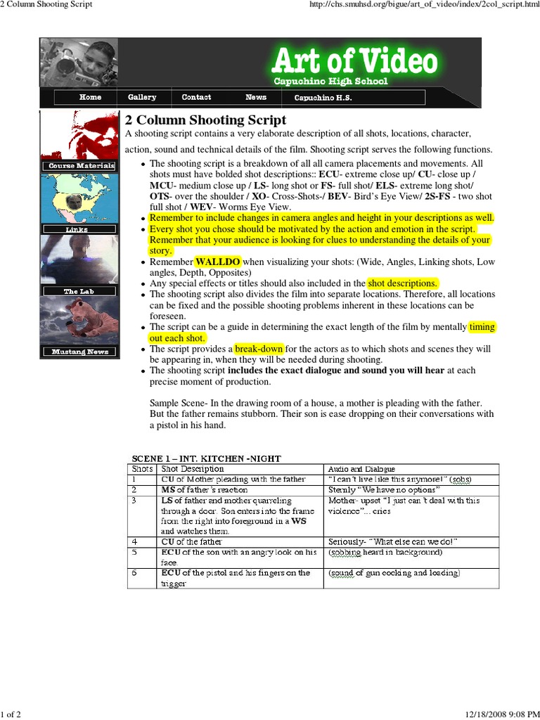 2 Column Shooting Script | PDF