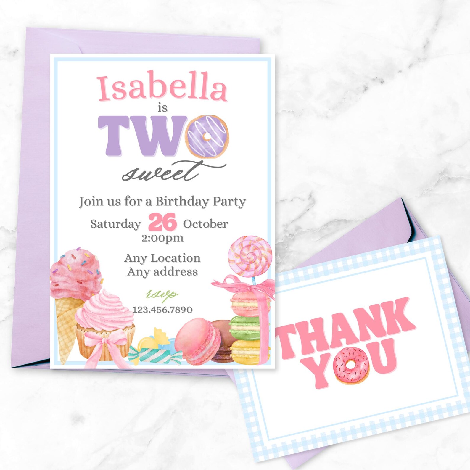 DIY Editable Two Sweet 2nd Birthday Party Invitation Template - Second ...