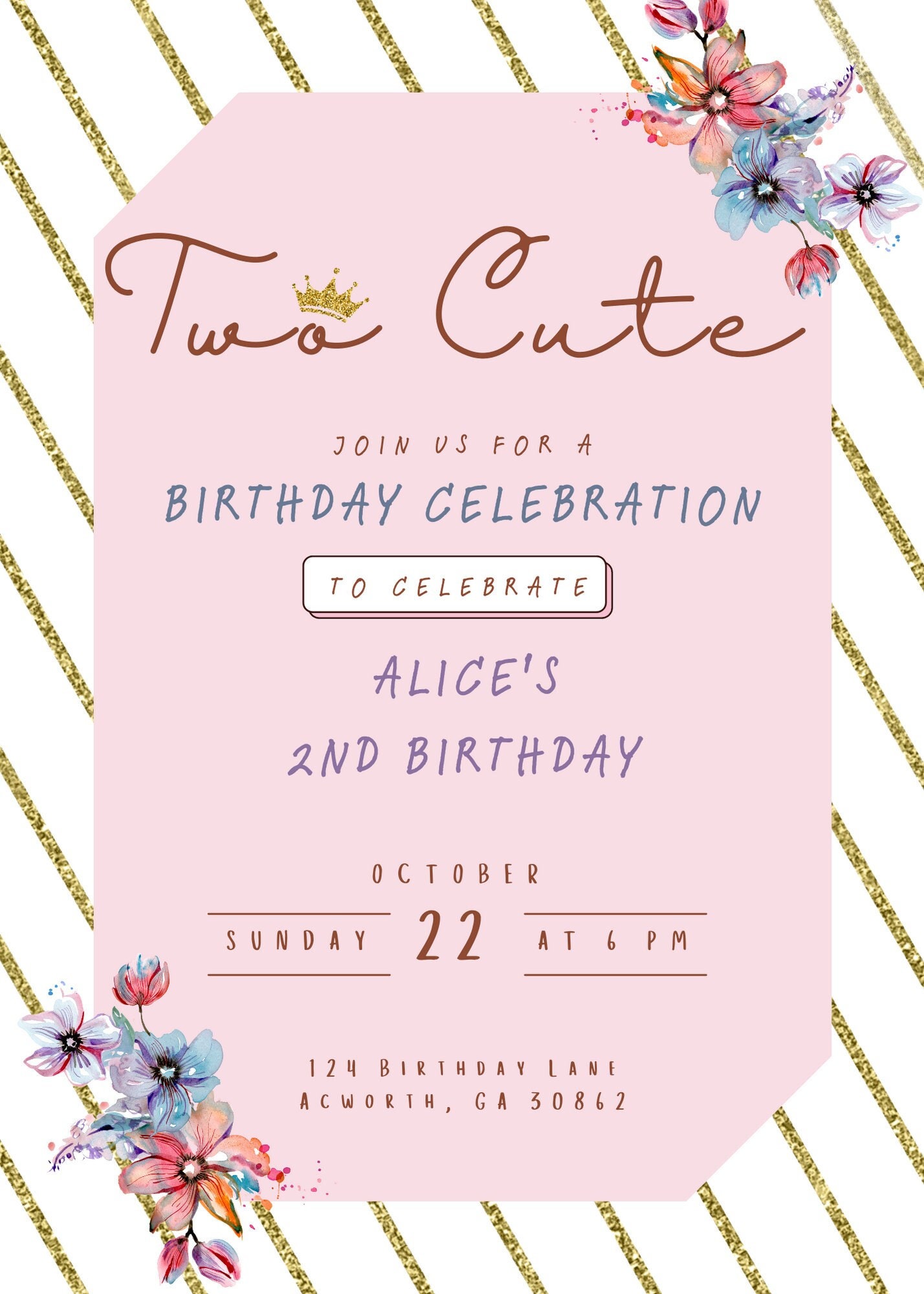Two Cute - Second Birthday Invitation - *editable Digital File* - Etsy