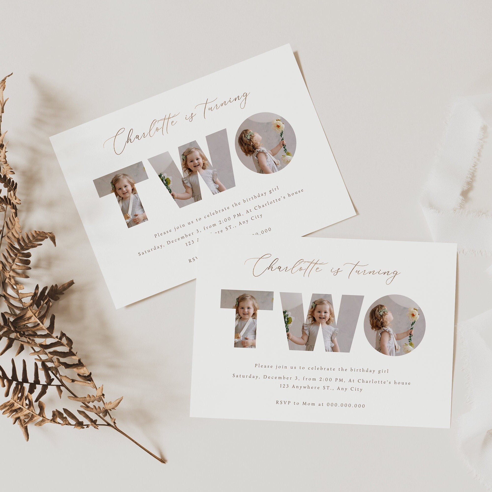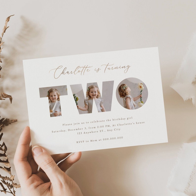 Editable Second Birthday Photo Invitation, Photo's in Text Invitation ...