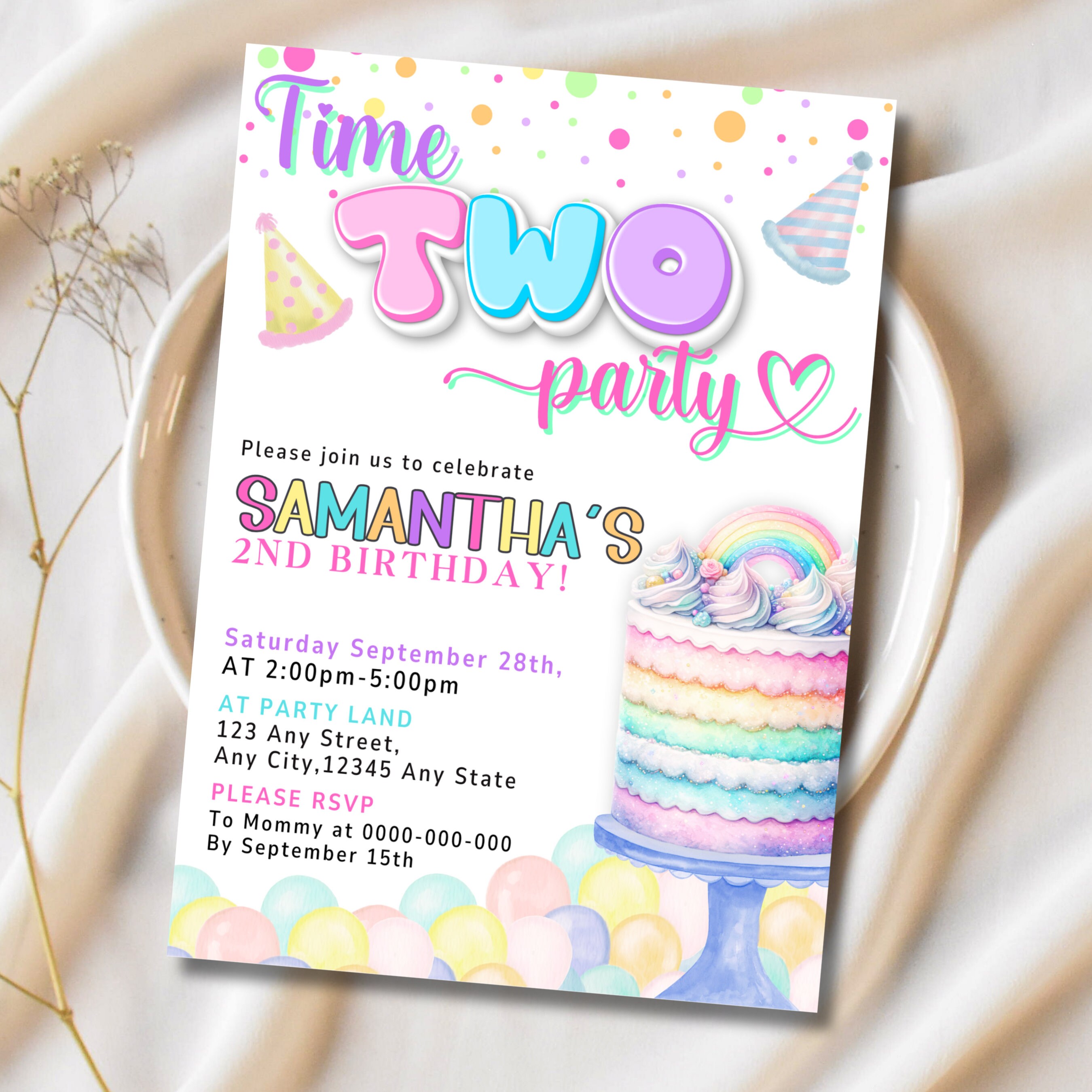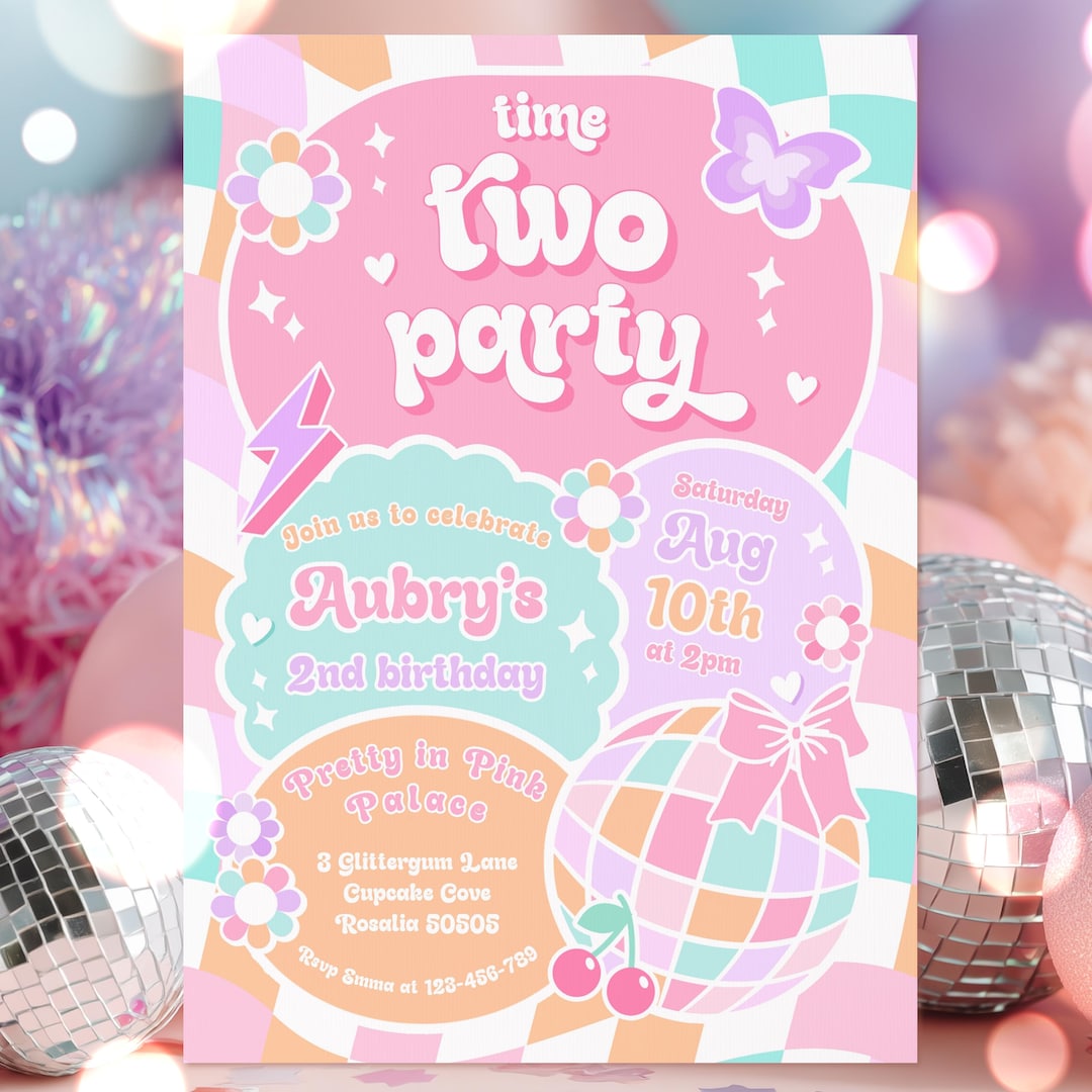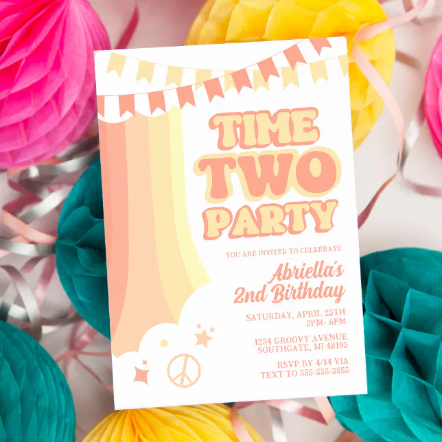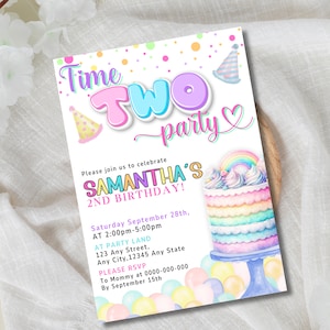 Editable Time Two Party 2nd Birthday Party Invitation Pastel Groovy 2nd ...